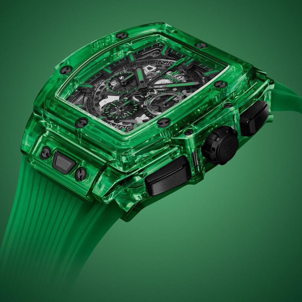 SpiritOfBigBang Green Saxem ใหม่! ตัวเรือนสีเขียวใสแบบมรกต ที่ Hublot เป็นผู้รังสรรค์ขึ้นสำเร็จเป็นครั้งแรกของวงการนาฬิกา ด้วยความล้ำหน้าของนวัตกรรมด้านวัสดุศาสตร์ อาศัยกระบวนการผสมผสานอลูมิเนียมออกไซด์ ส่วนประกอบพื้นฐานของแซฟไฟร์ เข้ากับแร่ธาตุล้ำค่าและหายาก จนได้วัสดุตัวเรือนที่มีเฉดสีเฉพาะตัวที่สวยสะดุดตาและมีความแข็งแกร่งไม่เป็นรองใคร Hublot #SpiritOfBigBang Green Saxem ผลิตจำนวนจำกัดเพียง 100 เรือนเท่านั้น