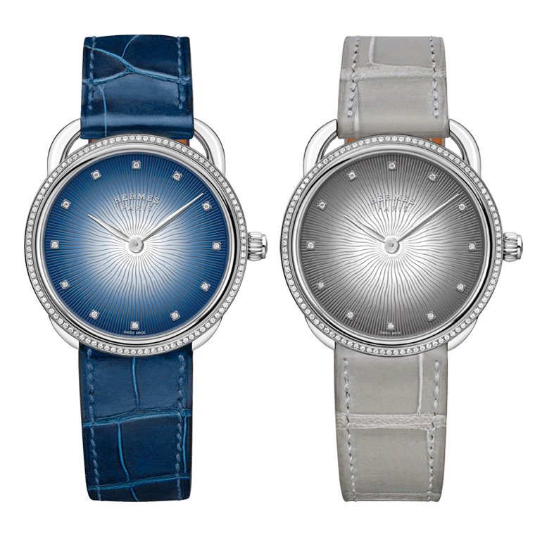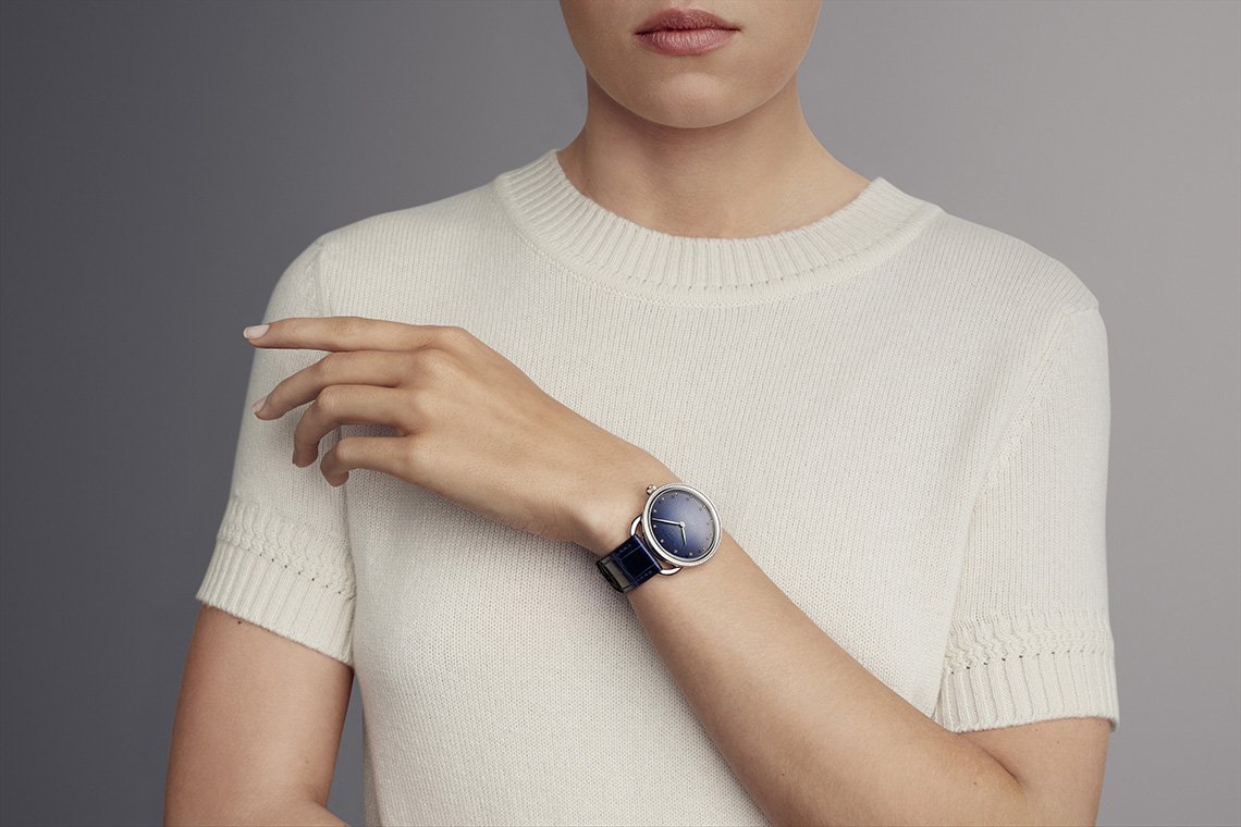นาฬิกา อาร์โซ (Arceau) ได้รับการสร้างสรรค์โดย อองรี ดอริญี (Henri d’Origny) ในปี 1978 นาฬิกาทรงกลมสุดคลาสสิก และข้อต่อตัวเรือนอสมมาตรที่ได้แรงบันดาลใจจากโกลน ยืมความงามที่เปี่ยมเอกลักษณ์ นำมาสู่การแสดงออกในรูปแบบใหม่ ลายกราฟิกเปล่งประกายรัศมีของผ้าพันคอจากจินตนาการของ Fred Rawyler ศิลปินชาวสวิส ถูกนำมาตีความใหม่เพื่อสร้างความลึกที่น่าสนใจและเทคนิคพิเศษของแสง นำประกายรัศมีของดวงอาทิตย์มาสู่พื้นหน้าปัดของผลงานในชื่อใหม่ที่ลงตัวว่า อาร์โซ โซเล (Arceau Soleil) แสงตะวันที่แผ่กระจายไปทั่วไล่ระดับในแบบค่าต่างของแสงที่ละเอียดอ่อน เน้นเส้นทางของเข้มเรียวบาง ในรูปทรงเรขาคณิตที่ชวนให้นึกถึงความหลงใหลที่ไม่รู้จบ เครื่องหมายหลักชั่วโมงประดับเพชรฝังบนแซฟไฟร์คริสตัล สร้างภาพลวงตาของเพชรที่ลอยอยู่เหนือหน้าปัด ในขณะที่แลกเกอร์โปร่งใสในโทนสีฟ้าหรือสีเทาจะทำให้ลวดลายแกะสลักฉายรัศมีอย่างน่าพิศวง ตัวเรือนสตีลประดับเพชรอย่างประณีตของนาฬิกาหรูหรางามสง่าเรือนนี้ จับคู่กับสายหนังจระเข้
