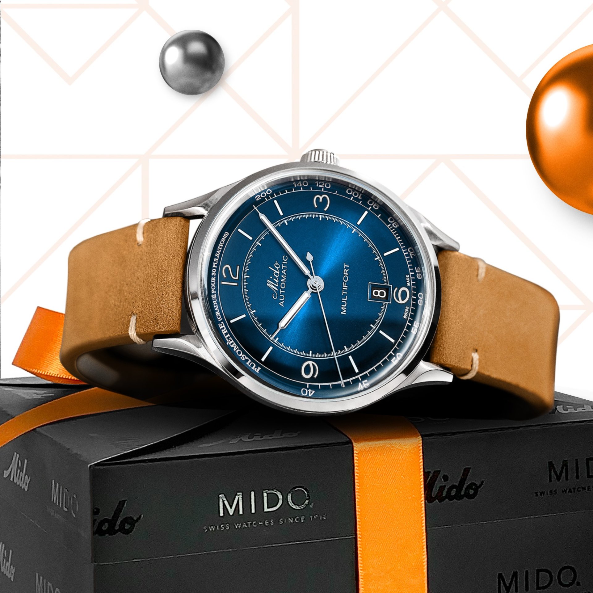 เมื่อความเรโทรผสานเข้ากับเทคโนโลยียุคใหม่ได้อย่างสมดุล จึงเกิดเป็น Multifort Patrimony นาฬิกาเรือนเด่นที่แสดงให้เห็นความเชี่ยวชาญของ Mido ได้อย่างชัดเจน เริ่มต้นด้วยความสะดุดตาแรกคือ หน้าปัดสีน้ำเงินเข้มในกรอบโลหะเงาวาว พร้อมความสามารพิเศษเฉพาะรุ่นคือมีมาตรวัดชีพจรโชว์อยู่ริมหน้าปัด รูปทรงเข็มนาฬิกาเป็นแบบคลาสสิก ส่วนตัวกระจกเป็นแซฟไฟร์คริสตัลที่ขึ้นชื่อเรื่องความใสและแข็งแกร่ง ภายใต้ภาพลักษณ์ที่ดูวินเทจนี้ มีกลไกทันสมัยที่สุดอย่าง Caliber 80 คอยให้พลังงานสำรองอยู่ ช่วยให้นาฬิกาเรือนนี้ทำงานได้อย่างแม่นยำและทรงประสิทธิภาพ จนเรียกได้ว่า Multifort Patrimony คือของขวัญทรงคุณค่าที่อยู่เหนือกาลเวลาอย่างแท้จริง