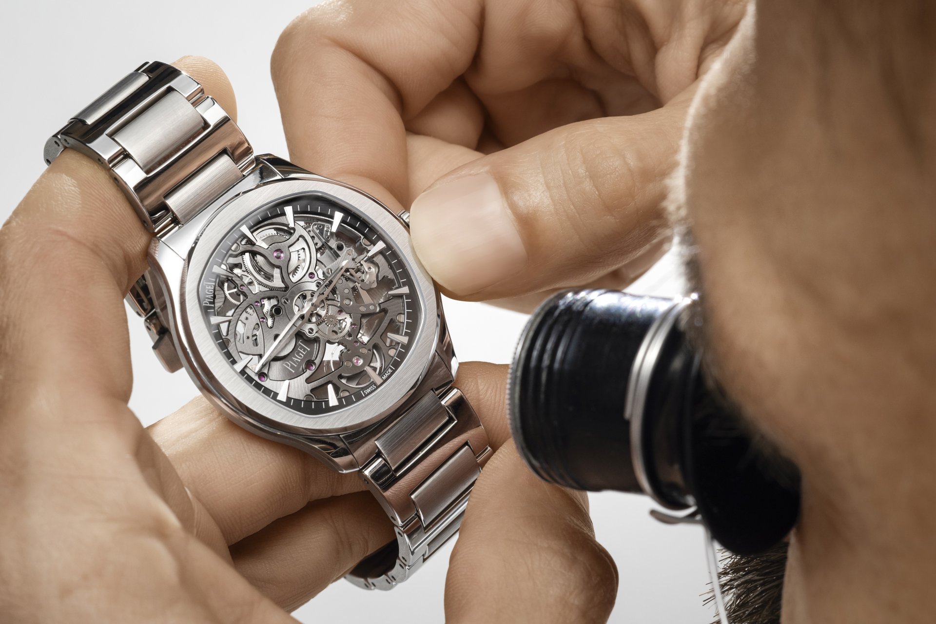 และหากพูดถึงความไม่ธรรมดาของนาฬิกาสักเรือน เพียเจต์ถือเป็นแบรนด์ที่เลื่องชื่อในแง่การผลิตกลไกที่บางพิเศษมาอย่างยาวนาน เพราะนอกจากคาลิเบอร์จะถูกพัฒนาให้มีดีไซน์เพรียวบางอย่างเหลือเชื่อแล้ว โครงสร้างทางสถาปัตยกรรมยังแฝงความประณีตขั้นสุดไว้อีกด้วย ที่สำคัญเมซงไม่หยุดตั้งโจทย์ท้าทายตัวเอง ไม่ว่าจะเป็นการทยอยปล่อยกลไกสไตล์ Skeleton ออกมาทำลายสถิติโลกให้ฮือฮา การผสานฟังก์ชั่นที่ซับซ้อน อย่าง ตูร์บิญอง, มูนเฟส การผสานกับเทคนิคหัตถศิลป์ อย่าง อีนาเมล ตกแต่งด้วยเพชร หรือแม้แต่การจับคู่กับระบบกลไกแบบไขลานอัตโนมัติ