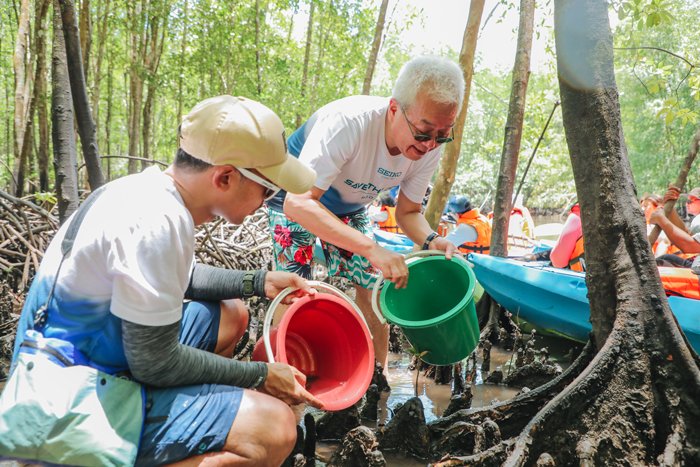 นอกจากนี้ ผู้ร่วมโครงการ Seiko Save The Ocean ยังพายเรือคายัคเป็นขบวนเข้าไปในพื้นที่ป่าชายเลน บริเวณท่าเลนแคนย่อน เพื่อปล่อยปูดำ สัญลักษณ์ของจังหวัดกระบี่ให้คืนสู่ธรรมชาติเพื่อขยายพันธุ์อีกกว่า 1,000 ตัว โดยมีเป้าหมายเพื่อฟื้นฟูระบบนิเวศน์ของท้องทะเลบริเวณป่าชายเลนให้กลับมาสมบูรณ์ดังเดิมและยั่งยืนตลอดไป