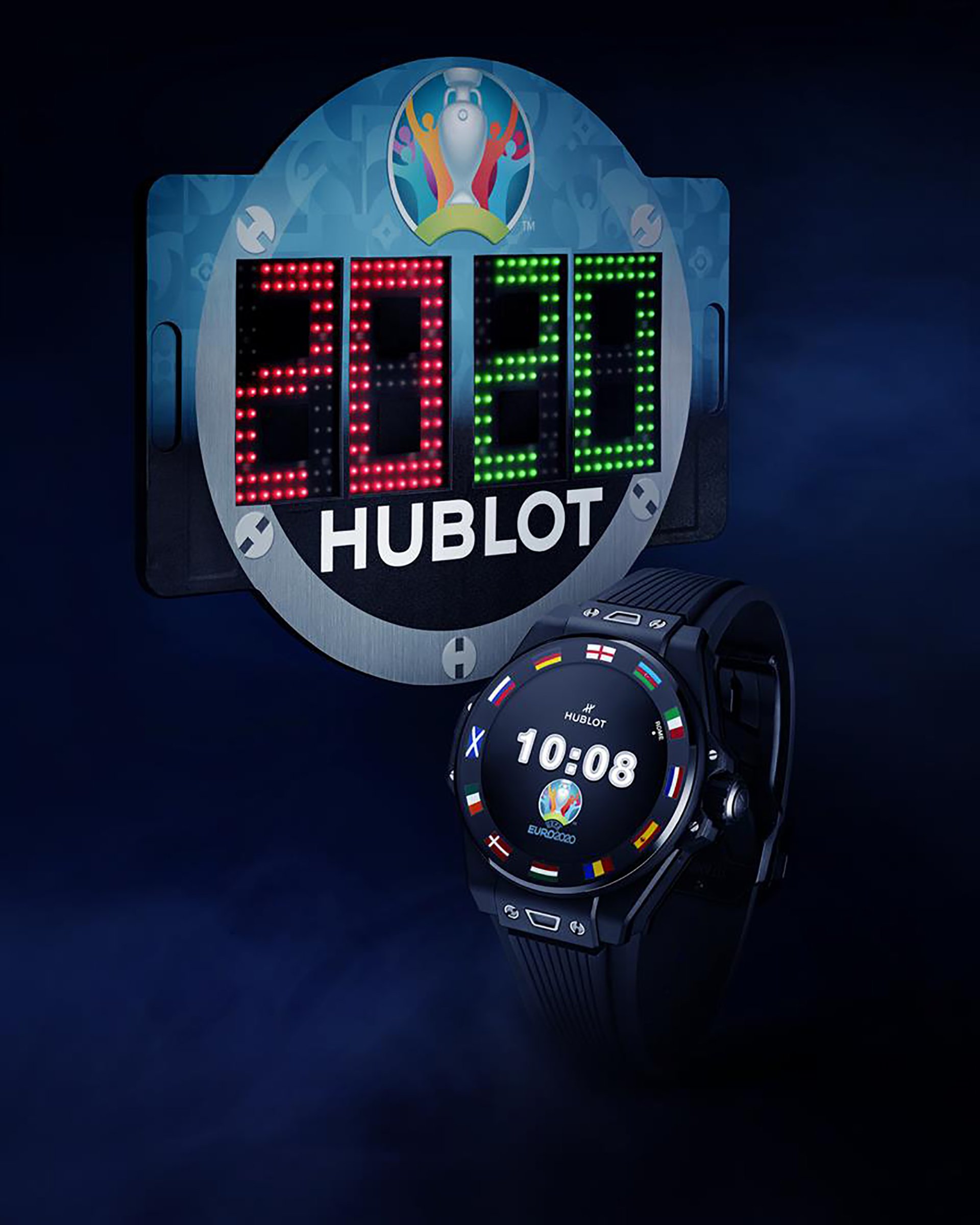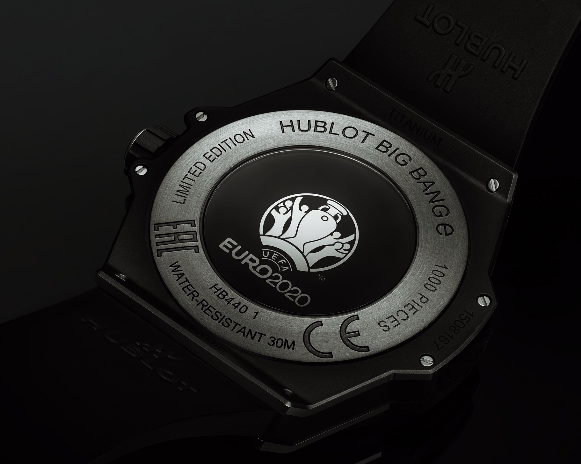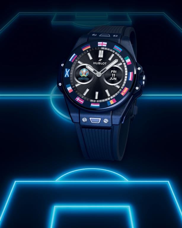 หลังเลื่อนการแข่งขันมานานนับปีในช่วงการแพร่ระบาดใหญ่ของโรค จึงนับเป็นครั้งแรกในประวัติศาสตร์การแข่งขันที่ ยูฟ่า ยูโร 2020 ยูโรเปี้ยน แชมเปี้ยนชิพ จะจัดขึ้นใน 11 เมือง และใน 11 ประเทศต่างกัน ซึ่งบนขอบตัวเรือนของนาฬิกา บิ๊ก แบง อี นี้จะเต็มไปด้วยสีสันของธงจาก 12 ชาติที่ริเริ่มวางแผนในการเป็นเจ้าภาพการแข่งขัน และเพื่อความสวยงาม นาฬิการุ่นนี้จึงออกแบบมาภายใต้ความสง่างามอันเป็นไอคอนิกของแบรนด์ อย่างนาฬิกา บิ๊ก แบง (Big Bang) ทั้งยังรับกับสรีระข้อมือได้ดียิ่งขึ้นด้วยตัวเรือนขนาด 42 มม. ทำจากแบล็ก เมจิก (Black Magic) ซึ่งเป็นเซรามิกสีดำขัดเงาโดดเด่นที่พัฒนาขึ้นโดยทีมเทคนิคของ อูโบลท์ พร้อมทั้งประสิทธิภาพของการกันน้ำได้ลึกระดับ 30 เมตร กระจกแซฟไฟร์ คริสตัลได้ถูกเนรมิตเป็นหน้าจอทัชสกรีนความละเอียดสูง AMOLED ที่ง่ายต่อการใช้งาน ขณะเดียวกันก็คล้ายกับนาฬิกาจักรกล โดยมีปุ่มกดบนเม็ดมะยมปรับหมุนได้ซึ่งใช้สำหรับเปิดใช้งานฟังก์ชันต่างๆ