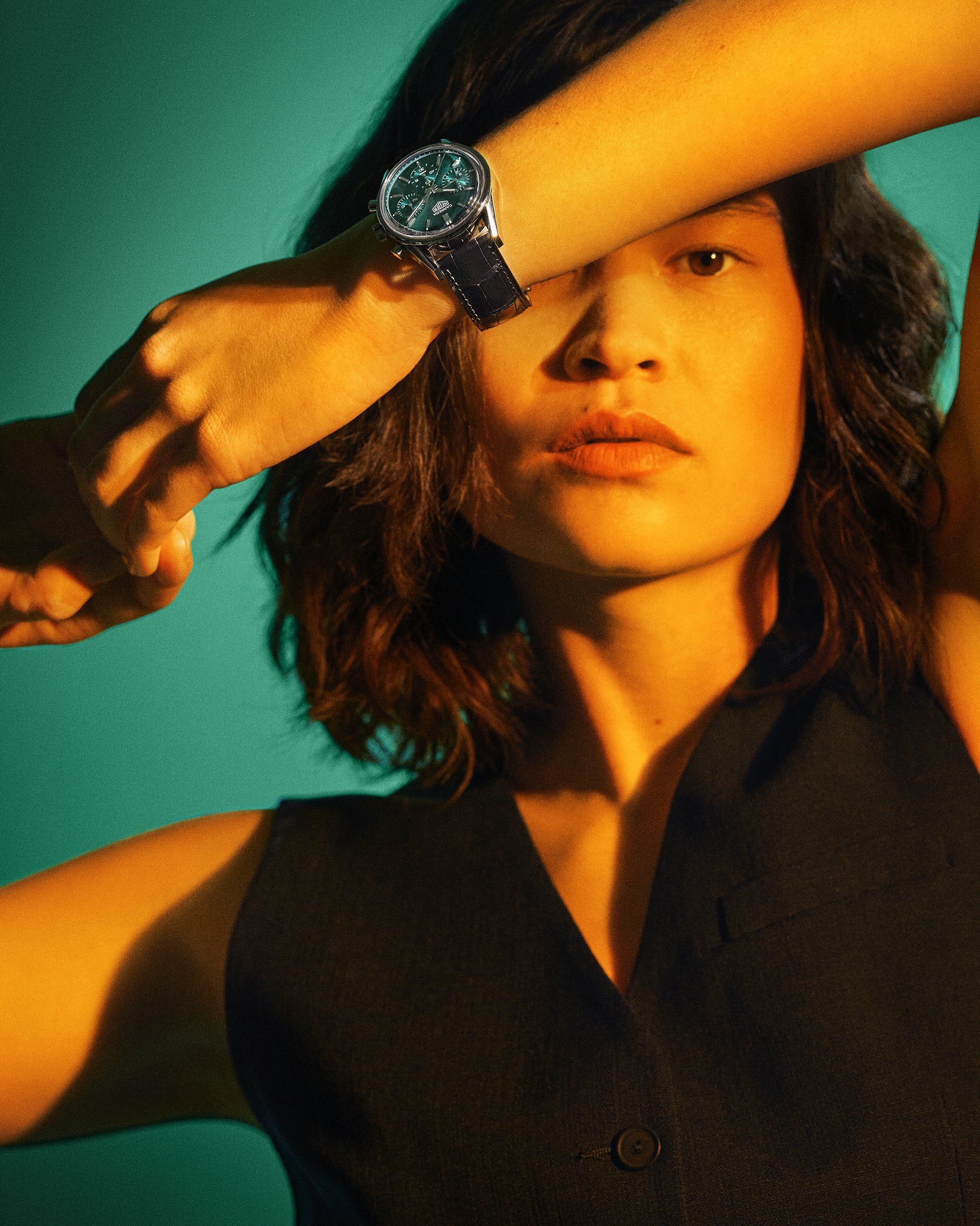 สุดท้ายแต่ไม่ท้ายสุด ฟีเจอร์ใหม่ที่ทำให้นาฬิการุ่นนี้โดดเด่นไม่เหมือนใครก็คือหน้าปัดเฉดเขียวเข้มขัดแต่งแบบซันเรย์ เฉดสีนี้ซึ่งไม่ค่อยปรากฏในนาฬิกาของ TAG Heuer เป็นส่วนผสมของสีน้ำเงินและสีเขียว ทำให้นาฬิกาดูครีเอทีฟ ทันสมัย และโดดเด่น เมื่อพลิกดูที่ฝาหลังตัวเรือนซึ่งเป็นกระจกแซฟไฟร์คริสตัลใสจะเห็นการแต่งแต้มด้วยสีเขียวสุ ดพิเศษบริเวณชิ้นส่วนคอลัมน์วีลของกลไกและบนตัวอักษรที่สลักคำว่า Calibre Heuer 02 และ Swiss Made บนโรเตอร์
