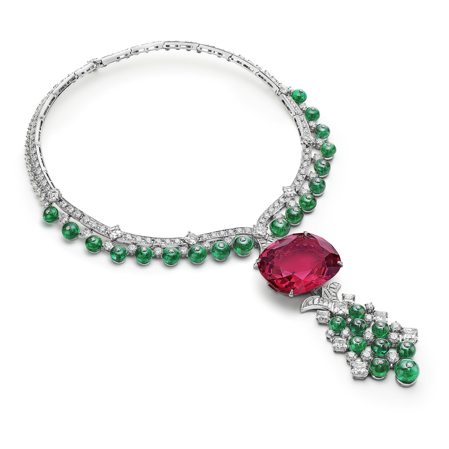 นับเป็นสปิเนลใหญ่ที่สุดอันดับสี่ของโลก ด้วยน้ำหนัก 131.21 กะรัต ที่ปรากฏอย่างสง่างามสูงสุดบนสร้อยคอ อิมพีเรียล สปิเนล (Imperial Spinel) ผลงานสร้างสรรค์อันล้ำเลิศที่แสดงออกถึงความมุ่งมั่นทุ่มเทอย่างแท้จริงของ Bvlgari สู่ความเป็นเอกลักษณ์หนึ่งเดียว สปิเนลอันแสนพิเศษที่พบในทาจิกิสถานนี้ได้ถ่ายทอดถึงเหลือบสีอันเข้มข้น มีความเป็นผู้หญิงและเข้มแข็ง โดยรายล้อมไว้ด้วยสายน้ำตกของเพชรและลูกปัดมรกต มอบเป็นการผสมผสานของสีอันโดดเด่นที่เป็นเอกลักษณ์ของ Bvlgari ระหว่างสีเขียวและโทนสีชมพูฮอตพิงค์ และแม้ว่าจะมีอัญมณีเม็ดกลางด้วยขนาดอันโดดเด่น แต่สร้อยคอซึ่งมิอาจเทียบเคียงได้นี้ก็ยังคงถ่ายทอดถึงความบางเบาและนุ่มนวล ซึ่งได้มาจากเส้นสายและปริมาตรอันสมดุลกลมกลืน