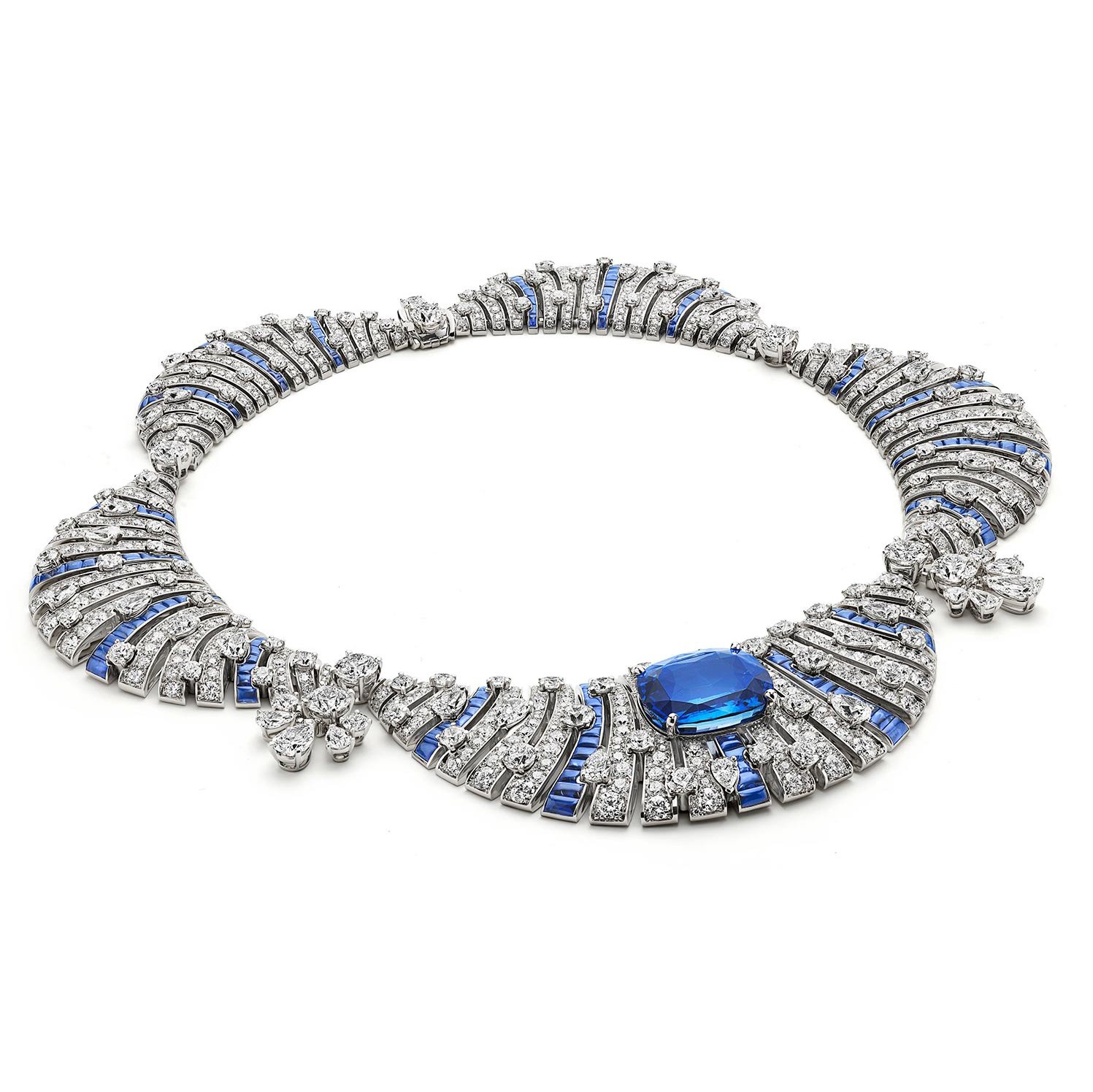โอบรอบลำคอราวกับปกเสื้ออันประณีตและนุ่มนวล แซฟไฟร์ เพเทิล (Sapphire Petal) ได้ผสมผสานทั้งความเข้มแข็งอันล้ำค่า และความบางเบาอันสง่างามที่เป็นหัวใจ ด้วยโครงสร้างที่รับไปกับสรีระของกลีบดอกไม้ห้ากลีบ เติมเสน่ห์ด้วยเพชรและแซฟไฟร์คาโบชองซึ่งออกแบบขึ้นอย่างเชี่ยวชาญและผลิตขึ้นโดยศิลปินแห่ง Bvlgari เพื่อรับประกันถึงการสวมใส่ได้อย่างสบาย กับความสามารถในการยืดหยุ่นได้อย่างสูงสุด และมอบความอ่อนนุ่มอย่างแท้จริง โดยแซฟไฟร์ทรงคอร์นฟลาวเวอร์เม็ดกลางหนัก 35.45 กะรัตนี้ได้มอบเกียรติให้แก่หนึ่งในอัญมณีอันโปรดปรานสูงสุดของ นิโคลา Bvlgari (Nicola Bulgari) ด้วยสีอันมีชีวิตชีวา ชวนให้หวนนึกถึงเสื้อคลุมสีฟ้าครามของพระแม่มารีย์ (Virgin Mary) ที่วาดโดยศิลปินเรอเนซองส์ อันโตเนลโล ดา เมสสินา (Antonello da Messina)