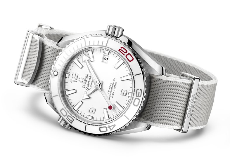 ตัวเรือนสแตนเลสสตีลขนาด 39.5 มม. ถูกติดตั้งด้วยขอบตัวเรือนเซรามิกสีขาว สเกลดำน้ำ OMEGA Liquidmetal™ และเพื่อเป็นการอุทิศให้กับปีของ Tokyo 2020 ตัวเลข 20 บนขอบตัวเรือนได้ถูกบรรจุด้วยลิควิดเซรามิกสีแดง