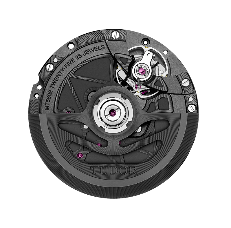 คาลิเบอร์ MT5602-1U ที่พัฒนาขึ้นภายในโรงงานของตนเอง ซึ่งเป็นขุมพลังของ Black Bay Ceramic แสดงการทางานของชั่วโมง นาที และวินาที โดยมีผิวสัมผัสเช่นเดียวกันกับคาลิเบอร์ที่พัฒนาขึ้นภายในโรงงานของ TUDOR รุ่นอื่นๆ แต่เป็นสีดำสนิทเพื่อให้สอดรับกับรูปลักษณ์โดยรวมของนาฬิกา โดยเน้นให้เห็นสมรรถนะในการทำงานที่โดดเด่น โรเตอร์ทาจากทังสเตนแบบโมโนบล็อกสีดาที่มีลวดลายฉลุ พร้อมผิวสัมผัสซาตินที่ตกแต่งรายละเอียดแบบพ่นทราย แผ่นเชื่อมและแท่นเครื่องมีพื้นผิวแบบพ่นทรายสลับกับขัดเงาและตกแต่งด้วยเลเซอร์