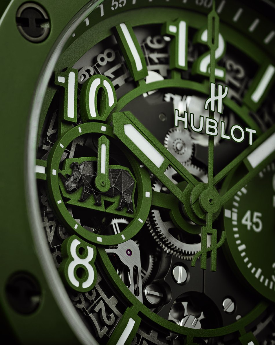 ขณะที่การเปิดตัวก่อนหน้านี้ ซึ่งมาพร้อมด้วยตัวเรือนเซรามิกสีเบจ ชวนให้นึกถึงสีสันของพุ่มไม้แห่งแอฟริกาใต้ในฤดูหนาว แต่ใน บิ๊ก แบง ยูนิโค โซไร (Big Bang Unico SORAI) รุ่นใหม่ที่ติดตั้งด้วยกลไก ยูนิโค แมนูแฟคเจอร์ (UNICO manufacture) นี้ได้แรงบันดาลใจมาจากสีสันทางธรรมชาติของพุ่มไม้แห่งฤดูร้อน ซึ่งเป็นการผสมผสานอย่างกลมกลืนระหว่างสองเฉดของสีเขียว จากตัวเรือนเซรามิกสีเขียวสู่สายยางลายคามูฟลาจสีเขียว หรือสายผ้าเวลโคร (velcro) โดยในรุ่นพิเศษนี้มีการแกะสลักไว้บนฝาหลังกระจกแซฟไฟร์ มีให้ครอบครองเป็นรุ่นผลิตจำนวนจำกัดเพียง 100 เรือน