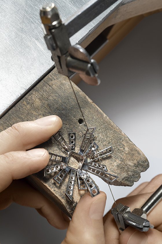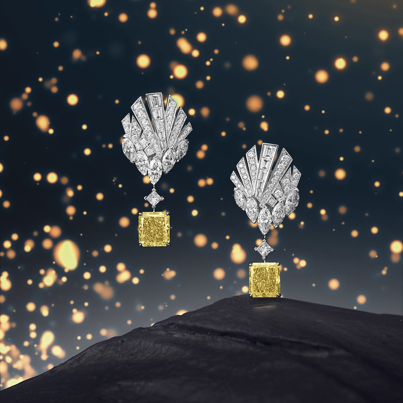 The Extraordinary Lights Set ชิ้นโดดเด่นแห่งปีต้องยกให้ สร้อยจิวเวลรี่ชุด Extraordinary Lights ผลงานสร้างสรรค์ที่ใช้เวลาไม่น้อยกว่า 450 ชั่วโมงในการผลิต โดดเด่นด้วยเพชรสีเหลืองทรงหมอนในเฉด fancy vivid ที่ผ่านการเจียระไนใหม่ จากเมซงเพื่อให้การเล่นแสงออกมาแบบไร้ที่ติ ทั้งยังได้น้ำหนัก 8.88 กะรัตตามที่ต้องการ ขณะที่ปลายสร้อยอีกด้านตกแต่งด้วยแซฟไฟร์สีน้ำเงินทรงลูกแพร์ น้ำหนัก 5.34 กะรัต จากศรีลังกา และ สปิเนลเฉดสีแดงทรงเดียวกัน น้ำหนัก 3.61 กะรัต จากแทนซาเนีย ก่อนนำมาร้อยเรียงเข้าด้วยกันด้วยสเปซาไทต์ และเพชร ออกแบบให้ทั้งสวมใส่สบายและปรับเปลี่ยนได้มากถึง 9 สไตล์ สะท้อนเรื่องราวที่งดงามของแสงในคอนเซ็ปต์ ‘day to night’ ได้อย่างสมบูรณ์แบบ โดยโทนสีอบอุ่นของแสงแดดนำเสนอผ่านเฉดสีเหลือง ส้ม และแดง ขณะที่สีน้ำเงินถูกนำมาสะท้อนถึงความเงียบสงบในช่วงกลางคืน นอกจากนี้แสงอันอบอุ่นในเฉดสีเดียวกับสร้อย ยังถูกนำมาประดับบนตุ้มหู และแหวนด้วยเช่นกัน ซึ่งแท้จริงแล้วนักอัญมณีศาสตร์ เผยว่า เพชรสีเหลืองเม็ดแรกที่หาได้คืออัญมณีที่นำมาประดับบนแหวนหลังจากนั้นอีก 2 ปีถึงสามารถตามหาเพชรที่ เหมาะสมกับทั้งสร้อยและตุ้มหู เข้าชุดเจอ