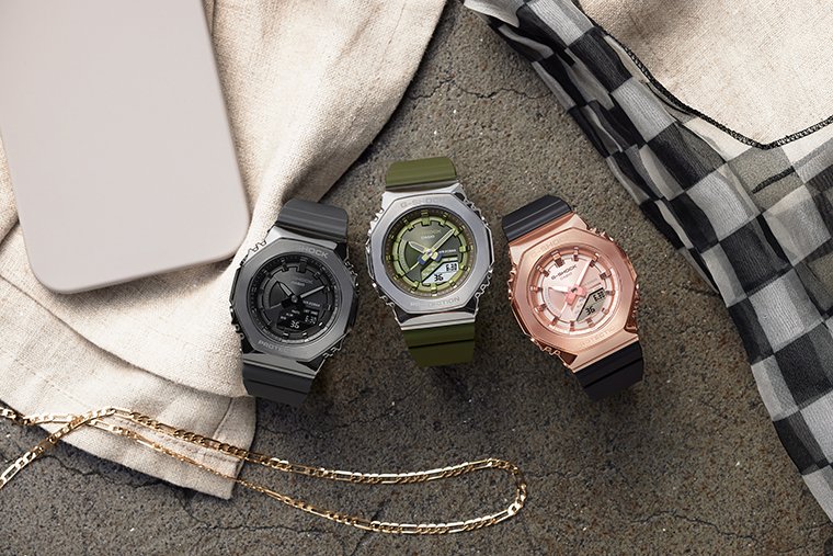 GM-S2100 รุ่นใหม่สำหรับผู้หญิง ยังคงเน้นการออกแบบที่เรียบง่าย กะทัดรัด สวยงามสไตล์มินิมอล เสริมกรอบตัวเรือนโลหะเน้นความแข็งแกร่งและความสวยงามเฉพาะตัว GM-S2100 รุ่นใหม่หน้าปัดมีการออกแบบอย่างประณีต พร้อมตำแหน่งบอกชั่วโมงแบบขัดเงา โดดเด่นยิ่งขึ้นเมื่อจับคู่กับกรอบตัวเรือนขัดด้าน ทำให้นาฬิกามีรูปลักษณ์ที่ซับซ้อนแต่ทรงพลัง กรอบตัวเรือนมีการเคลือบไอพีสองแบบ ได้แก่ สีพิงค์โกลด์ (GM-S2100PG) และ สีเทาเข้ม (GM-S2100B) ลงตัวกับแฟชั่นหลากหลายสไตล์