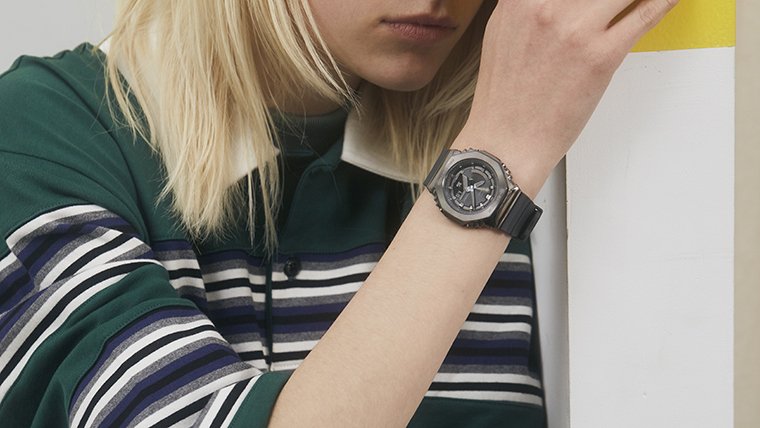GM-2100 รุ่นใหม่สำหรับผู้ชายยังคงเอกลักษณ์ที่เน้นความเพรียวบางคล่องตัวจากรุ่น GA-2100 ไว้ เสริมด้วยกรอบตัวเรือนโลหะทำให้นาฬิกามีรูปลักษณ์ที่เฉียบคมยิ่งขึ้น พื้นผิวด้านบนของกรอบนาฬิกาขัดด้าน ด้านข้างของตัวเรือนขัดเงาสร้างความประกายแวววาวจากโลหะอันสวยงาม โดย GM-2100 รุ่นใหม่มาพร้อมกับกรอบตัวเรือนเคลือบไอพีสองสี ได้แก่ สีน้ำเงินเทา (GM-2100N) และ สีเทาเข้ม (GM-2100B) เพื่อให้เหมาะกับหลากหลายสไตล์ หน้าปัดเคลือบเฉดสีน้ำเงิน เขียว และแดงโทนสีเมทัลลิก สายนาฬิกามีลวดลายจุดสี่เหลี่ยมจัตุรัสหลากหลายขนาด ให้รูปลักษณ์ที่คมชัด สอดคล้องกับดีไซน์ของหน้าปัด