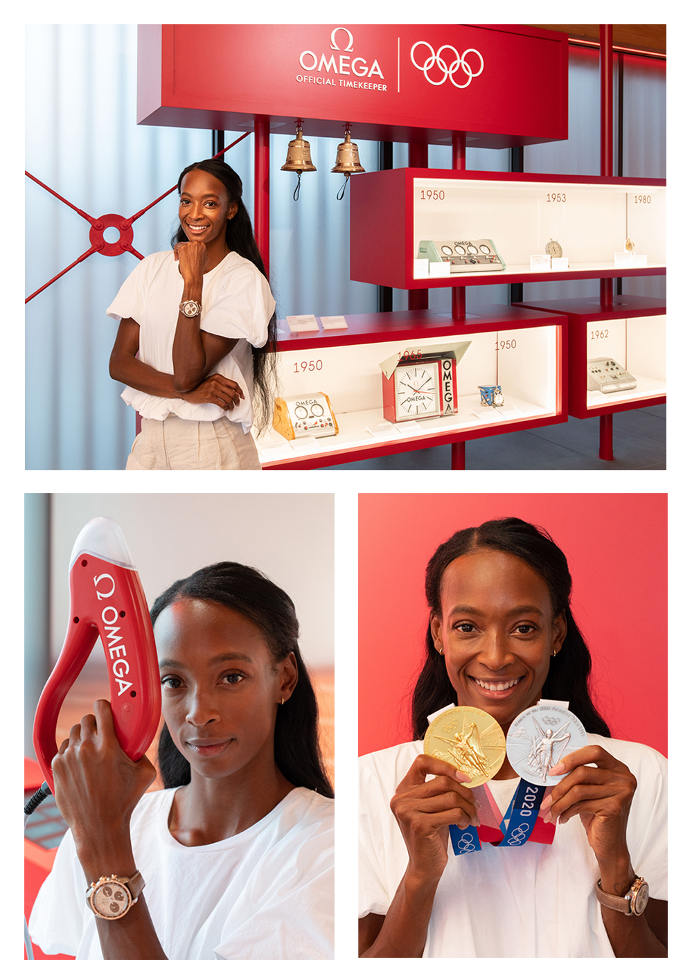 Dalilah Muhammad เจ้าของเหรียญทองและเหรียญเงิน, Danielle Kang นักกอล์ฟชาวอเมริกัน และ Lea Sprunger นักกรีฑากระโดดข้ามรั้วเลือดสวิสต่างร่วมใช้เวลาในเช้าสุดท้ายของ Tokyo 2020 ร่วมกันฉันท์มิตรในฐานะแขกคนสำคัญของนิทรรศการ OMEGA ในกรุงโตเกียว