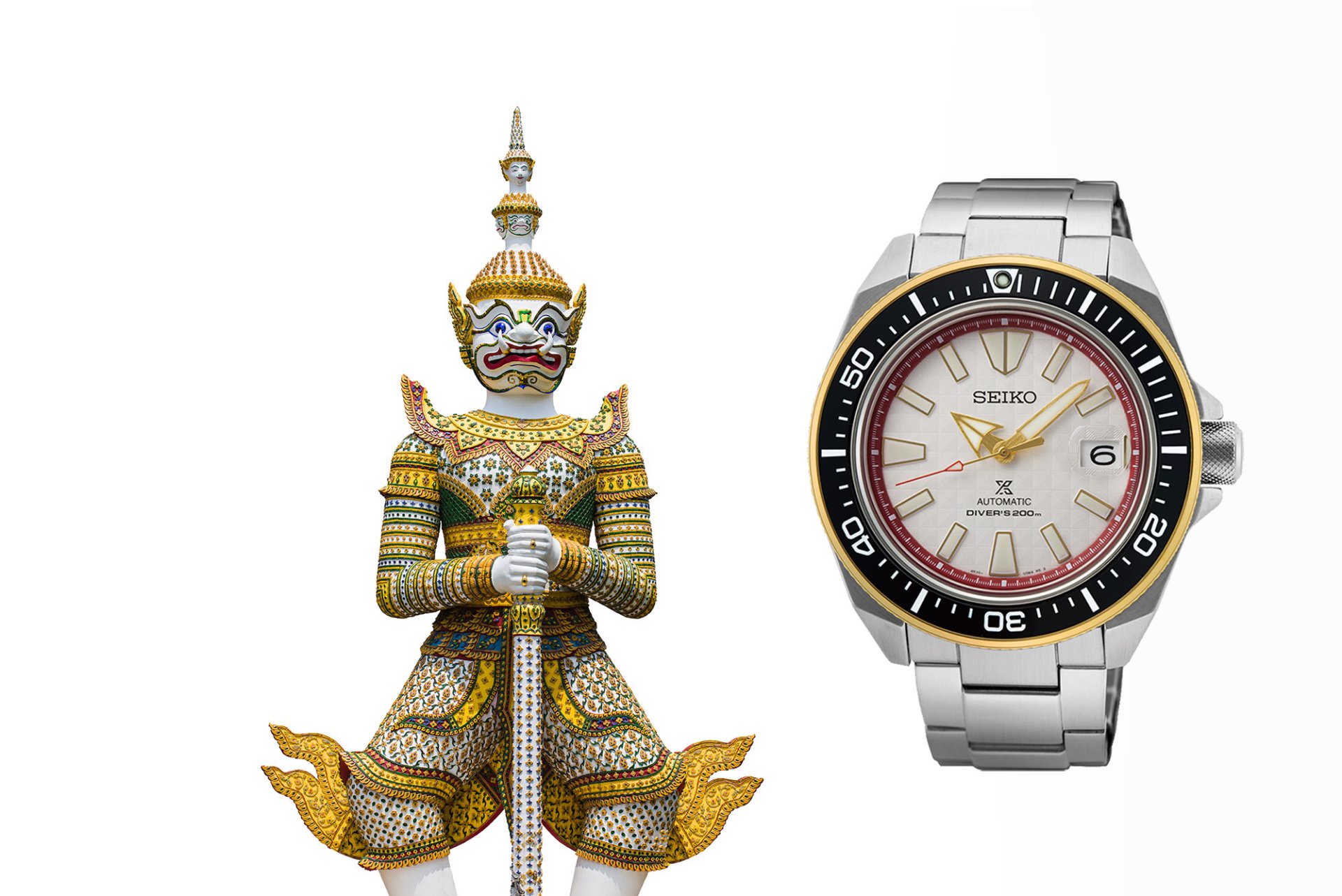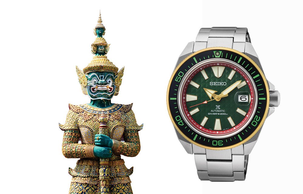 “ทศกัณฐ์” (ยักษ์กายเขียว) เป็นแรงบันดาลใจของ Seiko Prospex รหัส SRPH44K หน้าปัดสีเขียวแพทเทิร์นสี่เหลี่ยมจัตุรัสแบบสามมิติเลียนแบบผิวกายของยักษ์ที่ถูกประดับด้วยชิ้นกระเบื้องสวยงามปราณีต ขอบหน้าปัดสีแดงเหมือนสีของริมฝีปากของยักษ์ ขอบเซรามิกสีดำพิมพ์สเกลสีเขียวล้อมกรอบสีทองเหมือนดั่งมงกุฏจีน ชุดเข็มสีทองตัดกับเข็มวินาทีสีแดงเพิ่มความหรูหรา