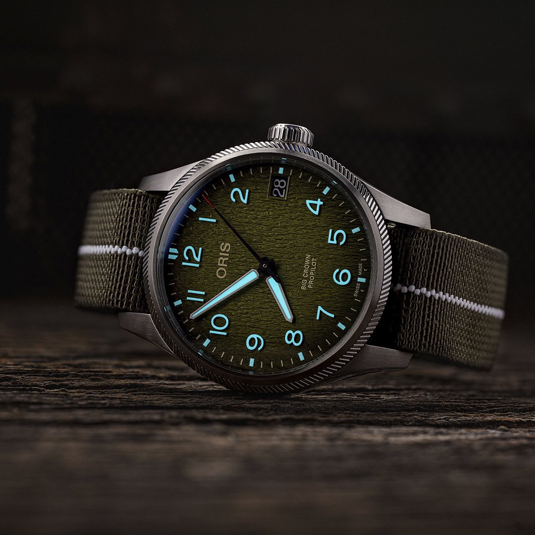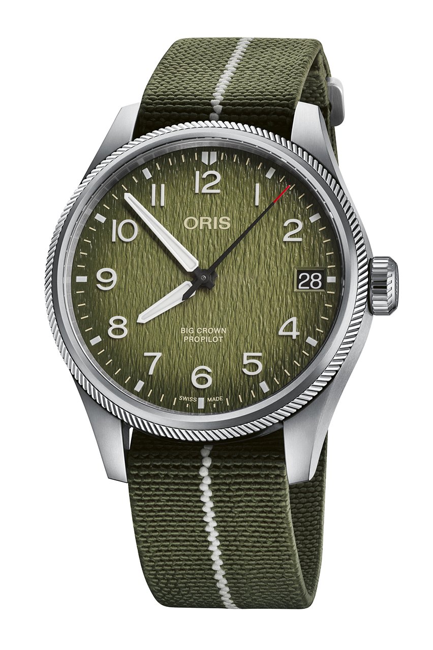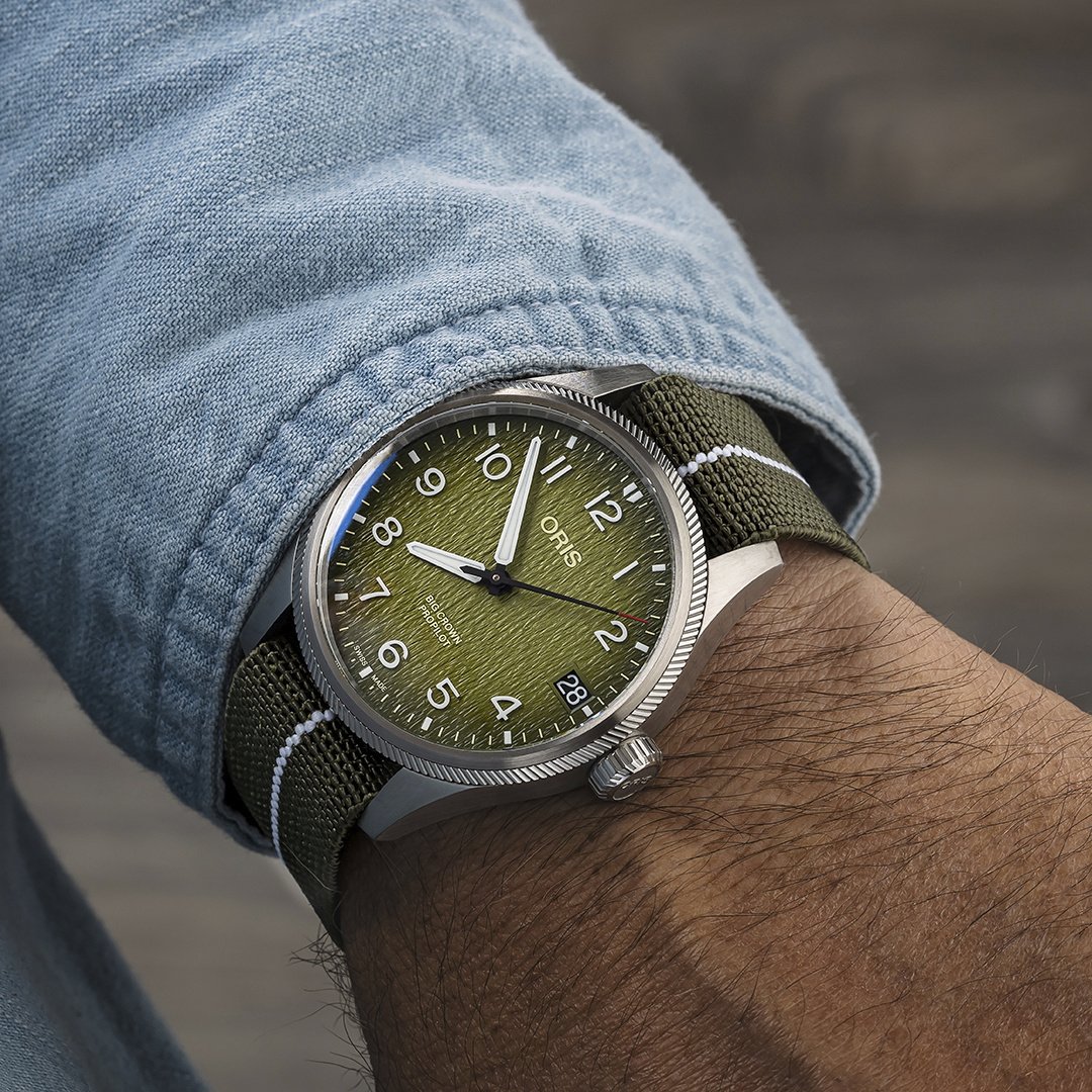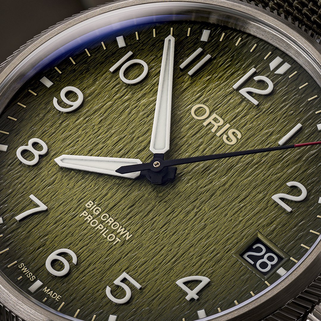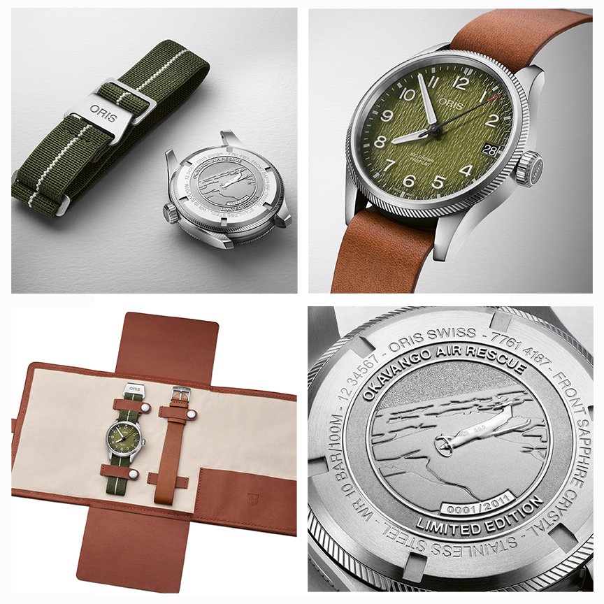 นาฬิการุ่นใหม่นี้มีพื้นฐานมาจาก Oris Big Crown ProPilot หน้าปัดสีเขียวได้รับแรงบันดาลใจจากพื้นหญ้าของสามเหลี่ยมปากแม่น้ำโอคาวังโก และมาพร้อมสายผ้าถักสีเขียวสุดพิเศษที่สร้างสรรค์โดย Erika’s Originals