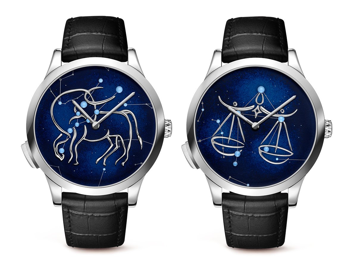 นาฬิกาข้อมือคอลเลคชั่น Poetic Astronomy หรือ “บทกวีแห่งจักรวาล” เปิดหนทางให้เราได้ย่างก้ าวไปตามวิถีโคจรของดาราจักรด้วยผลงานชุดใหม่อันประกอบขึ้นจากนาฬิกาข้อมือสำหรับผู้หญิง Lady Arpels Zodiaque Lumineux ถึงสิบสองงานออกแบบตามหมู่ดาวจักรราศีเพื่อสมทบกับนาฬิกาข้อมื อสำหรับผู้ชายรุ่น Midnight Zodiaque Lumineux ซึ่งได้รับเปิดตัวเป็นครั้งแรกไปเมื่อครั้งงานจัดแสดงนาฬิกาโลก SIHH 2018 ผลงานสร้างสรรค์นาฬิกาข้อมือทั้งสิบสองแบบเหล่านี้ คือการจำลองประกายสุกสว่างของมวลดารากลางเวหนโดยอาศัยกลไก light-on-demand หรือ “ระบบสั่งงานแสงตามต้องการ” ซึ่งถูกพัฒนาขึ้นเป็นครั้งแรกเมื่อปี 2016 สำหรับใช้กับนาฬิกาข้อมือ Midnight Nuit Lumineuse ระบบขับเคลื่อนอัตโนมัติอันเป็นเอกสิทธิ์เฉพาะเมซง บัดนี้ถูกนำมาใช้เป็นกลไกจุดประกายแสงสว่างเรืองรองให้แก่ สิบสองหมู่ดาวตามจักรราศีตะวันตก