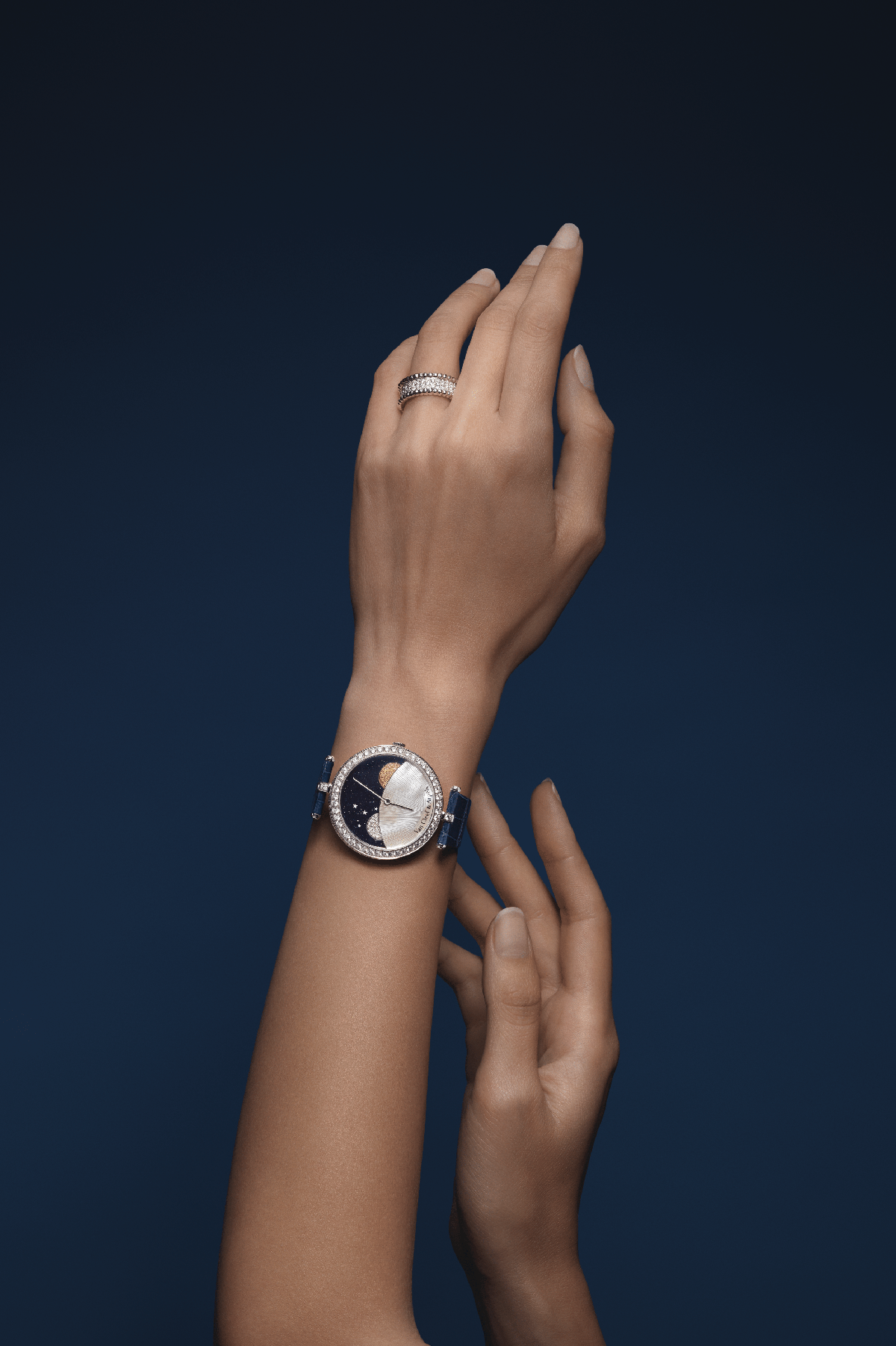 Van Cleef & Arpels ยกย่องมนตรามหัศจรรย์ เหล่านี้ด้วยการออกแบบสร้างสรรค์นาฬิกาข้อมือคอลเลคชั่น Poetic Astronomy™ หรือ “บทกวีแห่งจั กรวาล” ผืนฟ้าราตรี การประดับดาว, หมู่ดาราในจักรราศี,เดินทางของดวงตะวัน และจันทรา, นาฏกรรมลีลาแห่งดาวเคราะห์ ทุกผลงานคือการหลอมรวมท่วงทำนองรจนาถึงความวิจิตรงดงามบนห้วงเวลา เข้ากับความประณีต พิถีพิถันของกลไกบอกเวลาอันแม่นยำ เพื่อจุดประกายความรู้สึก และก่อกำเนิดห้วงอารมณ์อันทรงเอกลักษณ์ในทันทีที่ได้ยลทุกคอลเลคชั่น คือผลพวงจากการระดมสุดยอดฝีมือของช่างทำนาฬิกา, ช่างทำเครื่องประดับอัญมณี และหัตถกร เพื่อหลอมรวมไหวพริบในการพลิกแพลงทักษะความชำนาญต่างแขนงของพวกเขามาจำลองเวทีแห่งชีวิต นำพาเจ้าของสายตาที่ทอดมาชื่นชมความหรูหรา ละเมียดละไมให้ก้าวพ้นอาณาเขตของโลกแห่งความเป็นจริงไปสู่ดินแดนแห่งความฝันและจินตนารมณ์โดยแท้