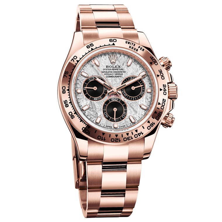 ผลงานที่ขับเคลื่อนด้วยประวัติศาสตร์ที่เปี่ยมด้วยเรื่องราว และยังเป็นที่รู้จักในฐานะนาฬิกาสปอร์ตหรู Oyster Perpetual Cosmograph Daytona ที่เริ่มต้นการผจญภัยอันน่าตื่นเต้น เผยความเท่ในตัวเรือนเอเวอร์โรสโกลด์จับคู่กับหน้าปัดเมธีโอไรท์ที่มาจากดินแดนอันไกลโพ้นนอกอวกาศ ทุกหน้าปัดจึงมีความเป็นเอกลักษณ์หนึ่งเดียวในโลก