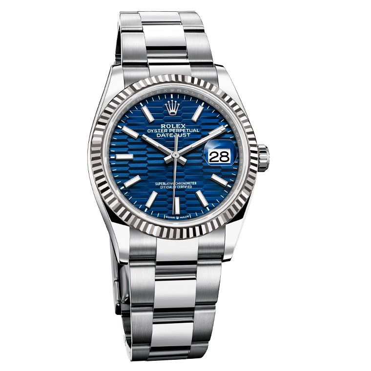 สืบทอดความงามที่ยั่งยืนและเป็นเอกลักษณ์ พร้อมสะท้อนความประณีตด้วยหน้าปัดแบบร่องสีน้ำเงินสว่าง Oyster Perpetual Datejust 36 ในตัวเรือนและสาย Oystersteel และทองคำขาว 18 กะรัตเป็นอีกทางเลือก สำหรับของขวัญให้สุภาพบุรุษที่มองหาความสง่างามอย่างมีสไตล์ในทุกสถานการณ์