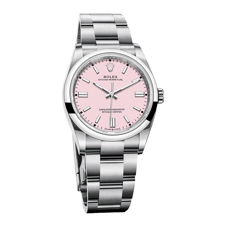 สดใสเข้ากับยุคสมัยใหม่ แต่ก็ยังคงความคลาสสสิกงามสง่าที่ไม่เคยตกยุค Oyster Perpetual 36 รุ่นใหม่มาพร้อมตัวเรือน Oystersteel แกร่งทน อวดความหวานด้วยหน้าปัดสีชมพูแคนดี้ จับคู่กับสายนาฬิกาแบบ Oyster สวมใส่สบาย สะท้อนบุคลิกอันร่าเริงของผู้สวมใส่ ทั้งยังแสดงเวลาด้วยความแม่นยำที่เชื่อถือได้ในทุกจังหวะชีวิต