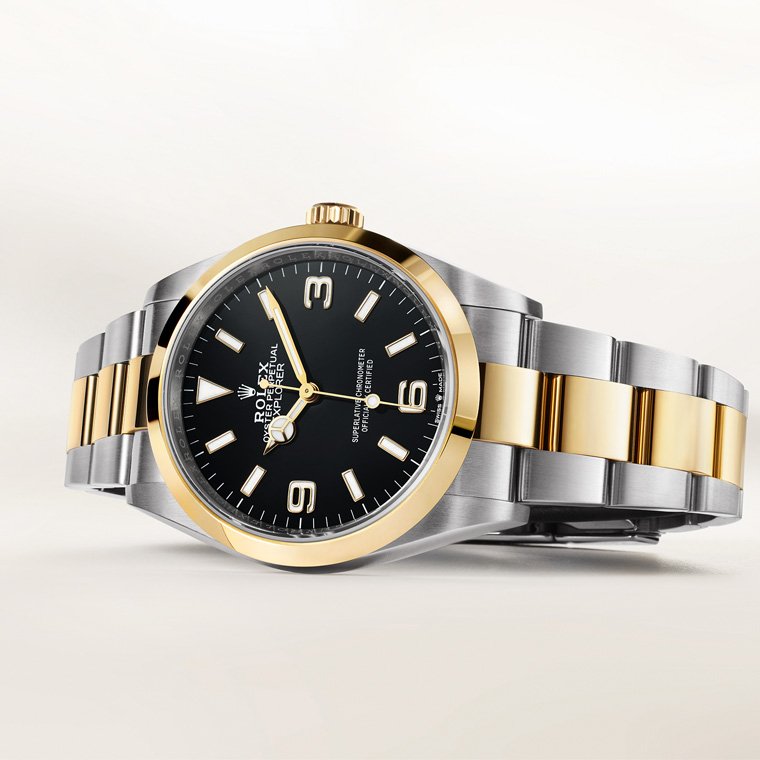 ผลงานที่ถือกำเนิดจากการเดินทางร่วมกับมนุษย์ในการพิชิตยอดเขาสูงที่สุดในโลกของเอเวอเรสต์ Oyster Perpetual Explorer หวนกลับมาอีกครั้งในตัวเรือนและสายแบบ Oyster ที่ทำด้ว yellow Rolesor พร้อมฟังก์ชั่นการทำงานที่ยอดเยี่ยม เหมาะสำหรับผู้มองหานาฬิกาคู่ใจที่ทนทานและทำงานด้วยความแม่นยำในทุกสถานการณ์