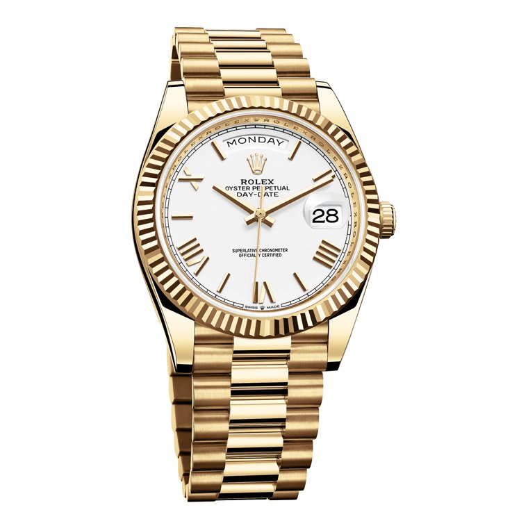 สัญลักษณ์แห่งความเป็นเลิศและความสำเร็จ ไม่ว่าจะทำสิ่งใดในชีวิต Oyster Perpetual Day-Date 40 ในตัวเรือนทองคำ 18 กะรัต พร้อมหน้าปัดสีขาว พร้อมสายนาฬิกา President สะท้อนตัวตนที่แข็งแกร่งและเผยให้เห็นถึงความโดดเด่นสง่างามกว่าใคร