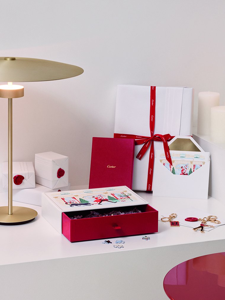 ในเทศกาลเฉลิมฉลองที่กำลังมาถึงนี้ คาร์เทียร์จึงอยากเชิญชวนทุกท่านมาเลือกสรรสโนว์โกลบในลวดลายเสือแพนเตอร์ การ์ดเกม จิ๊กซอว์ หรือเครื่องเขียนในลวดลายคาร์เทียร์เบลบอย เพื่อมอบเป็นของขวัญให้ตนเองหรือบุคคลที่ท่านรัก คาร์เทียร์ขอมอบช่วงเวลาที่อบอวลไปด้วยความสุขอันงดงาม ผ่านคอลเลคชั่นของขวัญและของประดับบ้านชุดนี้ ให้คุณตกแต่งต้นคริสต์มาส แต่งแต้มมุมโปรดของบ้านด้วยเครื่องแก้วและพอร์ชเลน พร้อมผูกริบบิ้นสีแดงอันเป็นเอกลักษณ์…ต้อนรับช่วงเวลาพิเศษที่กำลังจะมาถึง