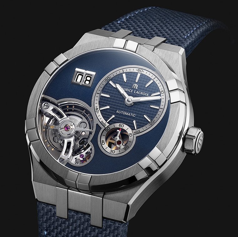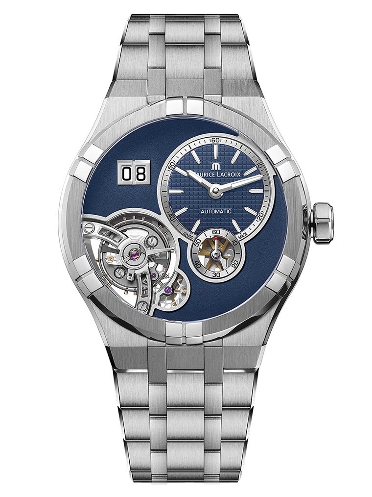 โดยการเล่นกับงานตกแต่งที่หลากหลาย Maurice Lacroix AIKON Master Grand Date ได้บรรจบซึ่งระดับใหม่ของการสร้างภาพที่ตัดกันและมอบความสามารถในการอ่านค่าได้อย่างชัดเจน ประกอบด้วยหน้าปัดแสดงชั่วโมงและนาทีแบบเยื้องศูนย์ตกแต่งลวดลาย Clous de Paris ขณะที่แผ่นหน้าปัดตกแต่งด้วยลายเกรน และสายคอร์ดูรา (Cordura®) ถ่ายทอดในเฉดสีน้ำเงินเข้มแบบด้านอันสง่างาม ส่วนขอบหน้าปัด รวมถึงกรอบหน้าต่างแสดงวันที่ขนาดใหญ่แบบนำมาติดประกอบ และหน้าปัดย่อยบอกวินาทีนั้นตกแต่งด้วยงานขัดด้านซาติน ซึ่งจับคู่รับไปกับขอบมุมขัดเงาของตัวเรือนสตีล ขนาด 45 มม. เช่นเดียวกับข้อต่างๆ ของสายนาฬิกาข้อมือโลหะแบบผสาน ที่เป็นเอกลักษณ์เฉพาะของไอคอน นอกจากนี้ Maurice Lacorix ยังได้หวนคืนสู่หนึ่งในคุณสมบัติอันโดดเด่นของไอคอน ด้วยหน้าต่างแสดงวันที่ซึ่งมีรูปทรงเดียวกันกับแขนบนขอบตัวเรือนนาฬิกานั่นเอง