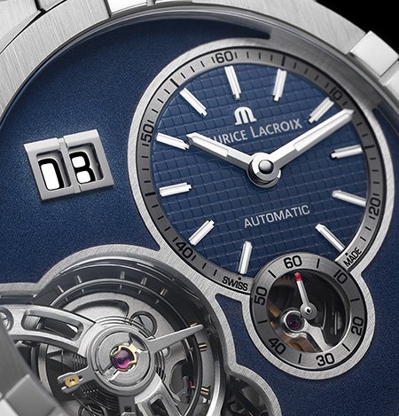 AIKON Master Grand Date เผยให้เห็นการสร้างสรรค์กลไกชุดใหม่ พร้อมทั้งงานออกแบบด้วยสไตล์ openworked หรือเปลือยโปร่ง ที่เปิดโชว์กลไกจักรกลไขลานอัตโนมัติแบบเยื้องศูนย์กลาง พร้อมบรรจุไว้ด้วยการแสดงวันที่ขนาดใหญ่และบาลานซ์วีล โดยผลงานการประดิษฐ์นาฬิกาอันเปี่ยมด้วยมิติลุ่มลึกนี้ได้เปิดซึ่งมุมมองใหม่ๆ และเป็นดั่งตัวแทนถึงความล้ำเลิศแห่งความเชี่ยวชาญในการประดิษฐ์นาฬิกาของมอริส ลาครัวซ์ ที่ ไอคอน มาสเตอร์ แกรนด์ เดท นี้ได้ผลักซึ่งขีดข้อจำกัดแห่งความสลับซับซ้อน ความสมดุลงดงาม และการประดิษฐ์นาฬิกาชั้นสูงให้รุดหน้าไปอีกขั้น