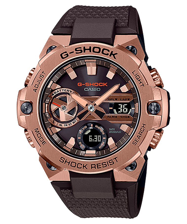 GST-B400MV-5AD ตัวเรือนสตีลขนาด 46.6 x 49.6 x 12.9 มิลลิเมตร มีน้ำหนักรวมสาย 80 กรัม กันน้ำลึก 200 เมตร กรอบตัวเรือนเรซินกันกระแทกเคลือบสีทองแดงคล้ายกับโทนสีดาวอังคารเพื่อบ่งบอกถึงความแข็งแกร่ง