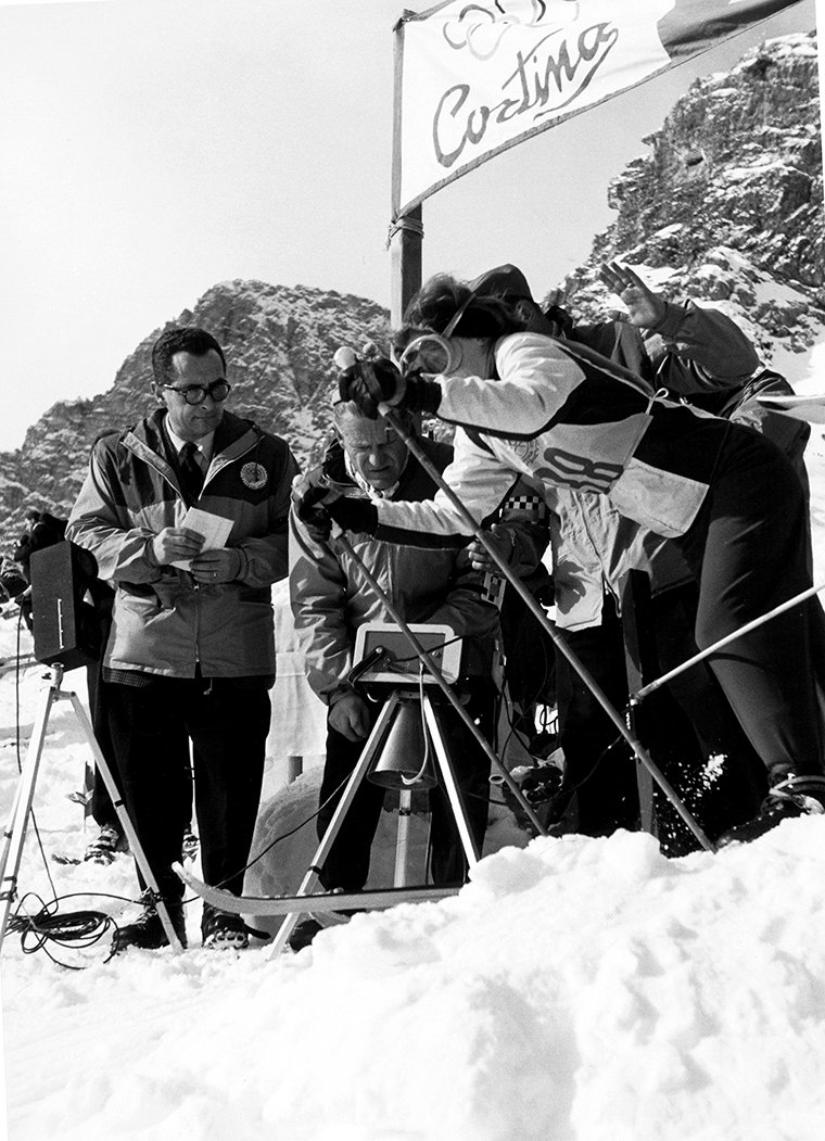 ปี 1956 เป็นปีแรกที่ OMEGA ได้นำประตูออกตัวมาใช้กับกีฬาสกีอัลไพน์ในกีฬาโอลิมปิก นวัตกรรมดังกล่าวได้ถูกใช้งานครั้งแรกที่กอร์ตีนาดัมเปซโซ (Cortina d’Ampezzo) โดยประตูจะทำหน้าที่ส่งสัญญาณออกตัวในแต่ละครั้ง และเมื่อนักกีฬาออกตัว OMEGA Quartz Recorder ก็จะเริ่มทำงาน