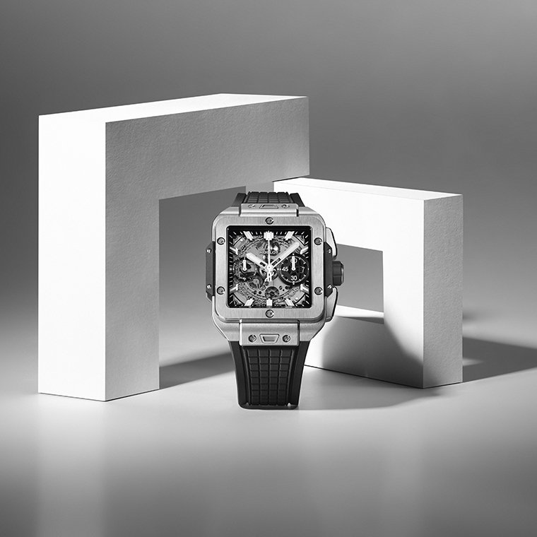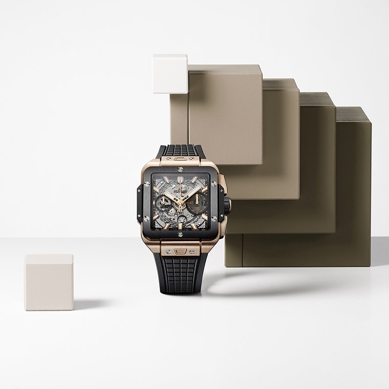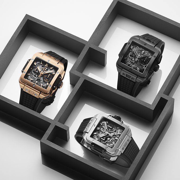 วันนี้รูปทรงที่ 4 ได้ถูกสร้างสรรค์ขึ้น: สี่เหลี่ยมจัตุรัส ที่ทำให้ Hublot หลงใหลจากความท้าทายอันหลากหลาย สิ่งแรกคือกลไก เนื่องจากทุกคาลิเบอร์จะมีวงล้อที่เป็นส่วนประกอบพื้นฐานจึงจำเป็นต้องมีกลไกในแบบทรงกลม หากคุณต้องการที่จะวางกลไกทรงกลมให้เข้ากับตัวเรือนสี่เหลี่ยมอย่างกลมกลืนคุณต้องมีสไตล์ที่เฉพาะเจาะจงมาก นั่นคือเหตุผลที่ว่าทำไมผู้ผลิตนาฬิกาส่วนใหญ่จึงต้องซ่อนกลไกของพวกเขาเอาไว้ เพื่อสร้างภาพลวงตาของรูปทรงกลไกหรือไม่ก็เพราะพวกเขาล้มเหลวในการค้นหารูปแบบที่สวยงามได้