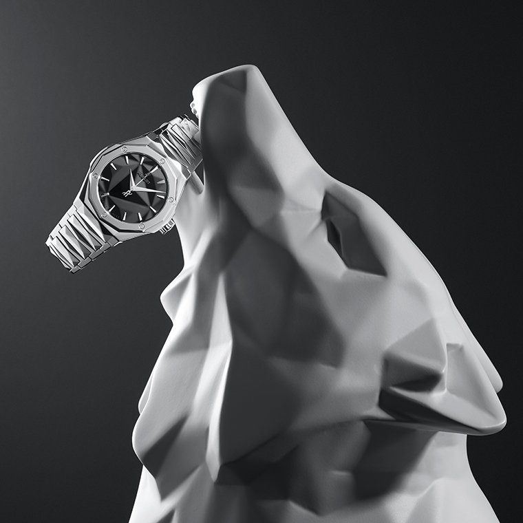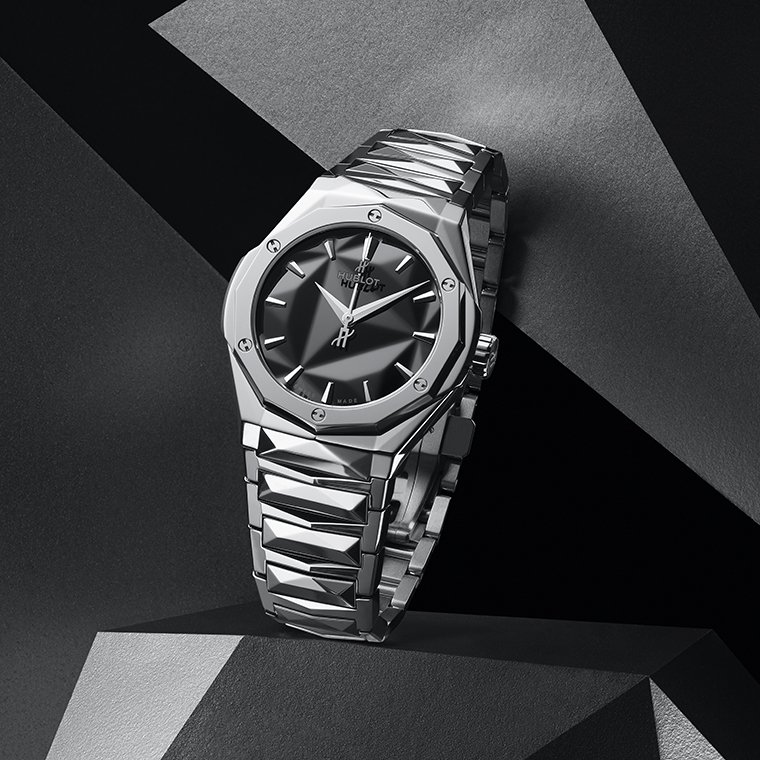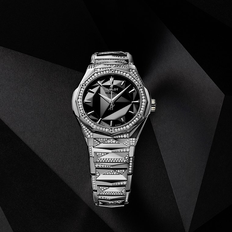 ได้แรงบันดาลใจมาจากประติมากรรมของ Richard Orlinski ที่รูปทรงขอบขึ้นมุมต่างๆ นั้น ล้วนเผยภาพการเล่นกับแสงสะท้อนบนเหลี่ยมด้านที่ผ่านการขัดเงาแบบกระจก ส่วนข้อสายรูปทรง H ยังเชื้อชวนให้นึกถึงโลโก้สัญลักษณ์ของ HUBLOT ขณะที่สายสร้อยข้อมือใหม่นี้ถูกเชื่อมต่อเข้ากับตัวเรือนนาฬิกาได้อย่างกลมกลืนจากเหลี่ยมด้านที่ขยายออก ตัวเรือนขนาดเส้นผ่านศูนย์กลาง 40 มม. นี้จึงเหมาะสำหรับทุกขนาดข้อมือและทุกเพศทุกวัย