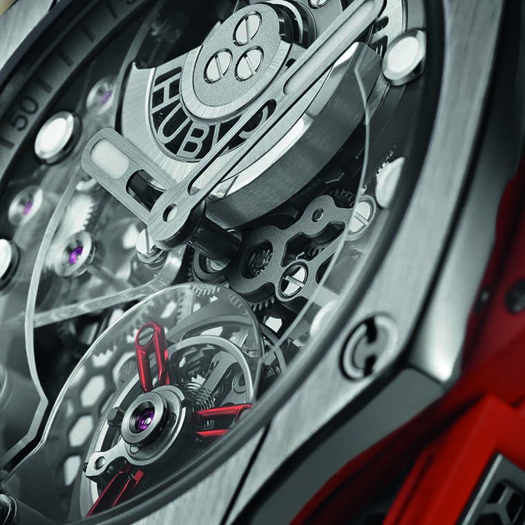 ประกอบด้วยชิ้นส่วน 282 ชิ้น กลไกจักรกล HUB6035 calibre (เอชยูบี6035 คาลิเบอร์) ที่ผลิตขึ้นภายในโรงงานของตนเอง ทำงานด้วยความถี่ 3 เฮิรตซ์ และสำรองพลังงานได้ 72 ชั่วโมง ผลงานรุ่นนี้ผลิตขึ้นในจำนวนจำกัดเพียง 50 เรือน แต่ละเรือนเป็นดั่งชิ้นงานศิลปะที่ได้นำเอามุมมองใหม่ๆ และภาษาแห่งภาพการมองเห็นครั้งใหม่มาสู่การประดิษฐ์นาฬิกา และเพื่อเฉลิมฉลองการเปิดตัวครั้งนี้ สีสันอันเป็นสัญลักษณ์ของ Ross จึงได้ถูกนำมาใช้ตกแต่งบูติกบนถนนหมายเลข 5 (5th Ave) ของ HUBLOT ในมหานครนิวยอร์ก และจะเกิดขึ้นเช่นกันในบูติก HUBLOT แห่งต่างๆ ทั่วโลก ที่พร้อมจะนำพาจักรวาลของ Samuel Ross มาสู่โลกแห่งเครื่องบอกเวลาระดับสูง