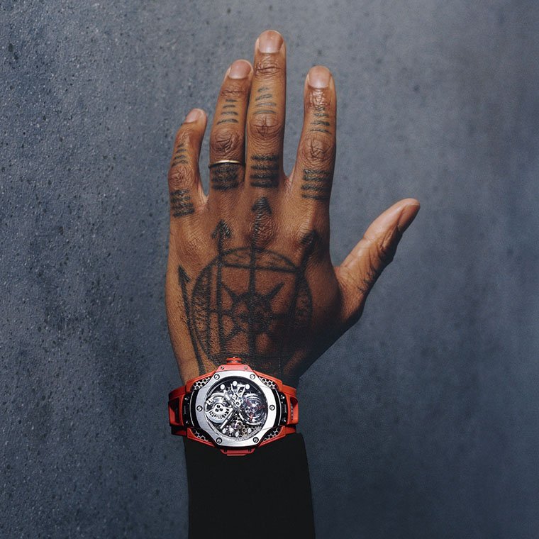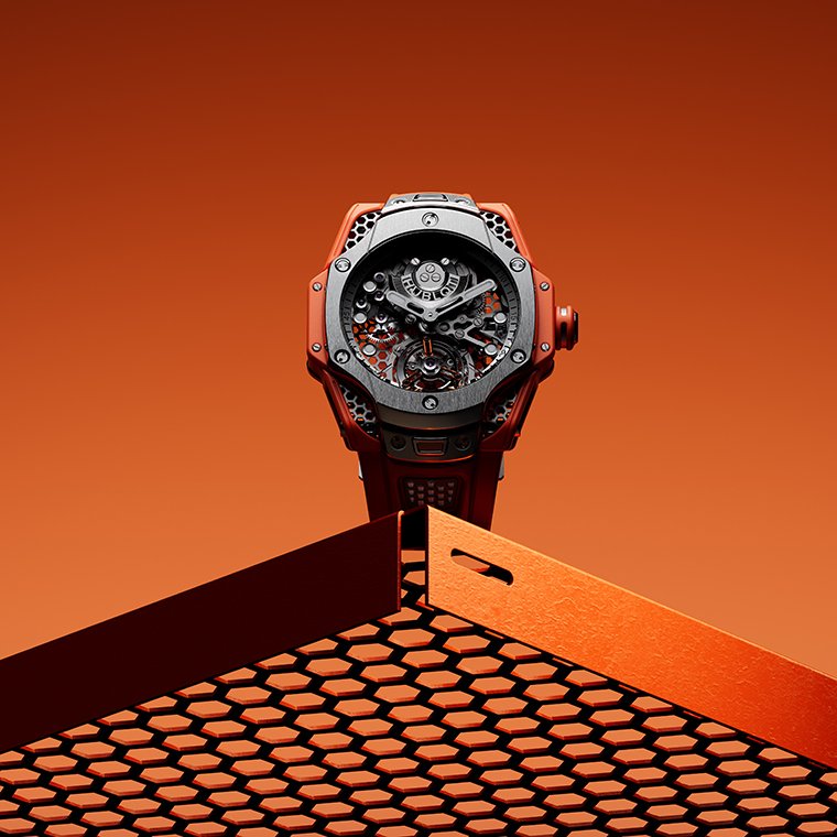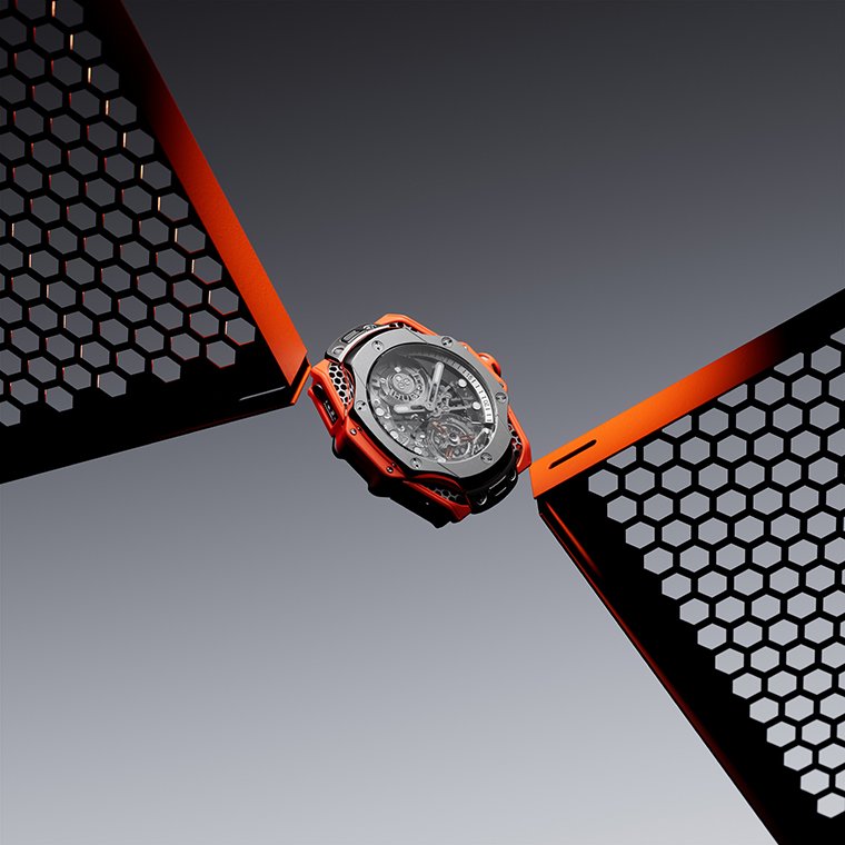 จากรูปแบบเชิงอุตสาหกรรมอันเรียบง่ายอย่างเหลือเชื่อของผลงานศิลปะสูง 40 ซม. ในวันนี้ได้ถูกนำมาผ่านการตีความใหม่ไว้ภายในตัวเรือน 45 มม. ของ Big Bang Tourbillon Samuel Ross ในฐานะนาฬิกาข้อมือเรือนแรกของ Ross ที่เป็นความร่วมมือกับ HUBLOT โดยการใช้สีสัญลักษณ์ของ Ross และความรักความหลงใหลที่เขามีต่อรูปทรงเรขาคณิตอันชัดเจนและงานออกแบบสไตล์เมือง หลอมรวมกับนวัตกรรมและความเที่ยงตรงแม่นยำอันโดดเด่นซึ่งเป็นเอกลักษณ์ที่มีอยู่ทั้งในงานของ Ross และ HUBLOT