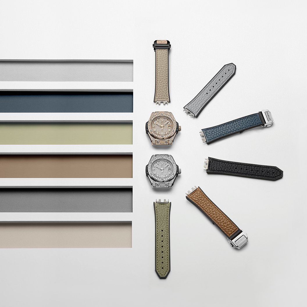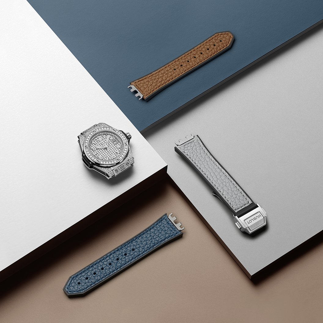 พร้อมปรับเปลี่ยนไปตามอารมณ์ความรู้สึก นาฬิกาเหล่านี้สามารถปรับลุคเปลี่ยนสไตล์ได้อย่างง่ายดายเพียงคลิกเดียว ด้วยระบบ ‘One Click’ ซึ่งได้รับการจดสิทธิบัตรโดย HUBLOT ซึ่งสามารถถอดเปลี่ยนระหว่างสายหนังวัวสัมผัสอ่อนนุ่มทั้ง 12 เวอร์ชันได้อย่างแยบยลบนข้อมือ โดยมี 12 สีสันให้เลือกตั้งแต่สีคลาสสิคเหนือกาลเวลาตลอดไปจนถึงสีสันแวววาวเจิดจรัสและสดใสสะดุดตา ที่ผ่านการรังสรรค์ด้วยเทคนิคหนังฟอกฝาด (vegetable tanning) ของฝรั่งเศส ซึ่งเป็นอีกหนึ่งวิธีที่จะพาคุณไปสู่การสร้างสรรค์และเปลี่ยนแปลงไปตามกาลเวลาในสไตล์ที่ไม่มีสิ้นสุด โดยสายเหล่านี้ยังมีให้เลือกสำหรับนาฬิกา Big Bang One Click ในรุ่น 39 มม. และ Big Bang Unico 42 มม. ด้วยเช่นกัน