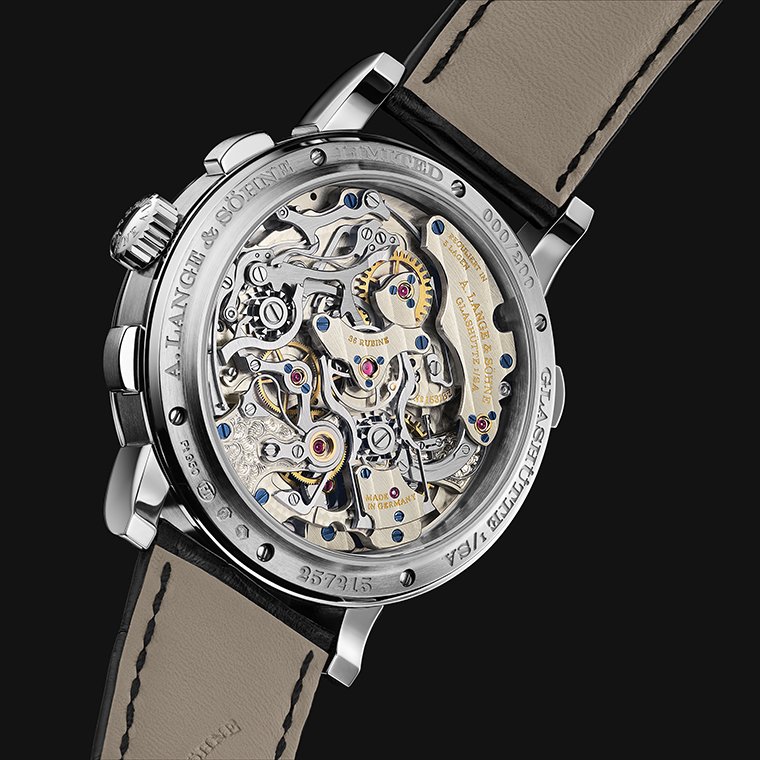 1815 Rattrapante ในตัวเรือนที่ผลิตขึ้นจากแพลทินัมนี้ มีขนาด 41.2 มิลลิเมตร หนา 12.6 มิลลิเมตร ติดตั้งกระจกหน้าปัดและฝาหลังตัวเรือนด้วยกระจกคริสตัลแซฟไฟร์ พื้นหน้าปัดรังสรรค์ในสีเงิน argenté แสดงรายละเอียดของสเกล Tachymeterรอบขอบหน้าปัด รวมถึงสเกลเวลาบนวงหน้าปัดย่อยในรูปแบบสเกลรางรถไฟ แสดงเวลาด้วยเข็มสีน้ำเงิน และเข็ม split second สีเงิน ประกอบเข้ากับสายหนังจระเข้สีดำตัดเย็บด้วยมือ รัดสายด้วยหัวเข็มขัดแพลทินัม ความหรูหราสะท้อนศาสตร์และศิลป์แห่งการผลิตเรือนเวลาเยอรมันคอลเลกชันนี้ผลิตขึ้นเพื่อให้เป็นเจ้าของเพียง 200 เรือนเท่านั้น พร้อมสลักขอบฝาหลังด้วยข้อความ “Limited xxx/200” ยืนยันถึงจำนวนการผลิตที่เฉพาะเจาะจง ซึ่งจะวางจำหน่ายเฉพาะบูติก A. Lange & Söhne เท่านั้น