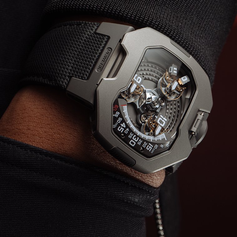 โดยผ่านการตีความลงสู่ขนาดที่มีเอกลักษณ์เฉพาะตัว ด้วยสัดส่วนของความยาว 44 มม. กว้าง 47 มม. และหนา 15.8 มม. ที่ตัวเรือนของ UR-120 นี้โดดเด่นด้วยสัมผัสแห่งสรีระและการยศาสตร์อันสมบูรณ์แบบ กับความหนาสูงสุดซึ่งจรดกับจุดกลางของกระจกแซฟไฟร์และบนยอดโค้งอันนุ่มนวลอ่อนโยน ขณะที่ส่วนด้านบนของตัวเรือนนั้นมีความราบเรียบทั้งหมด ไร้ซึ่งสกรูหรือรอยร่องหยักแม้เพียงเล็กน้อย เพื่อมอบผลลัพธ์ของเส้นสายอันลื่นไหลอย่างสมบูรณ์แบบ