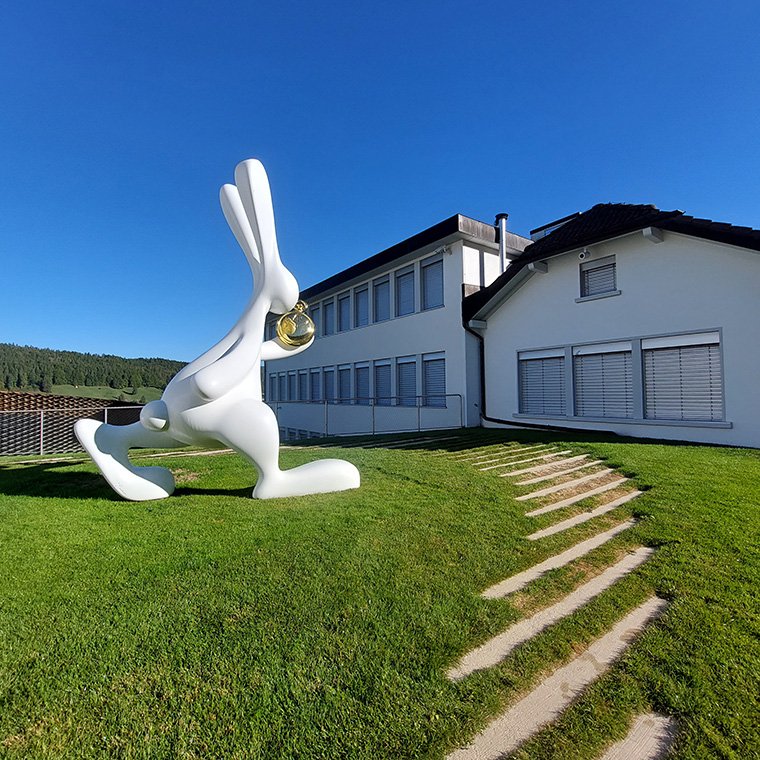 กระต่ายตัวใหญ่สีขาวตัดกับสีเขียวของต้นหญ้าและสีฟ้าเข้มของท้องฟ้า ถือนาฬิกาพก AP ไว้ในมือ ยืนเด่นตระหง่านระหว่างอาคารโรงงานและอยู่เบื้องหน้าของสถาปัตยกรรมรูปทรงเกลียวที่ดูราวกับผุดขึ้นมาจากพื้นดิน เป็นเสมือนกระต่ายสีขาวในอลิซในแดนมหัศจรรย์ ที่จะนำพาทุกคนไปในดินแดนอัศจรรย์ภายใน Musée Atelier Audemars Piguet พิพิธภัณฑ์แห่งใหม่ล่าสุดของแบรนด์ที่มีประวัติศาสตร์ยาวนานกว่า 147 ปี ซึ่งรวบรวมประวัติศาสตร์ของผู้บุกเบิกเครื่องบอกเวลาและถ่ายทอดความชำนาญจากอดีตสู่ปัจจุบัน และพร้อมที่จะส่งต่อไปในอนาคตอย่างมั่นคง