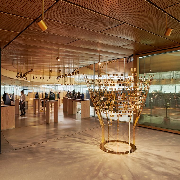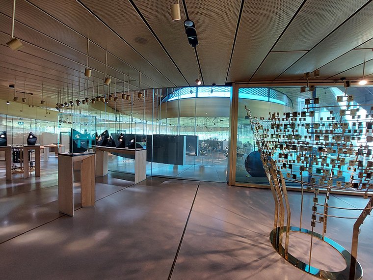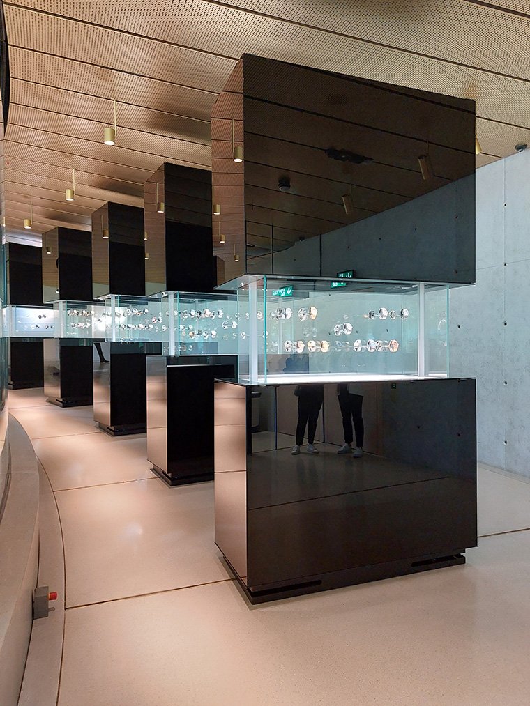 ผลงานมาสเตอร์พีซที่มีความซับซ้อนที่สุดของโอเดอมาร์ ปิเกต์ถูกจัดแสดงไว้ตรงใจกลางของอาคารทรงเกลียว ในตำแหน่งที่งานออกแบบสถาปัตยกรรมของอาคารแห่งนี้ดูโดดเด่นที่สุด