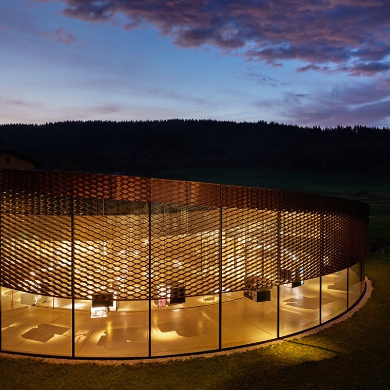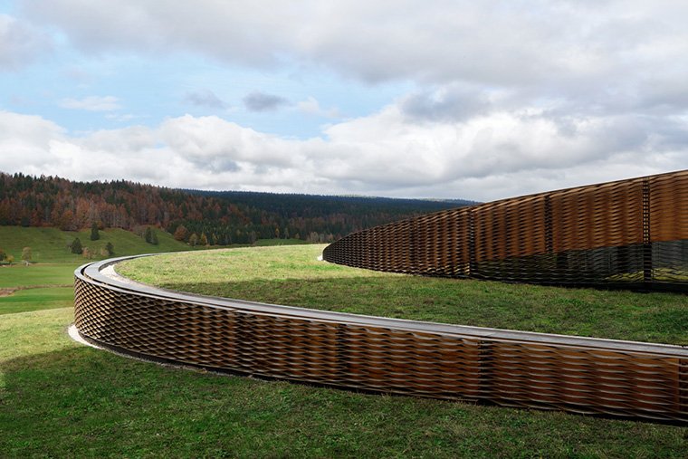 อาคารรูปทรงเกลียวของพิพิธภัณฑ์โอเดอมาร์ ปิเกต์ ซึ่งออกแบบโดยบริษัท BIG และมี CCHE ซึ่งเป็นบริษัทสถาปนิกสัญชาติสวิตเซอร์แลนด์เป็นผู้ก่อสร้างนั้น เป็นอาคารที่ค่อย ๆ ไล่ระดับสูงขึ้นอย่างไร้รอยต่อจากกำแพงของโครงสร้างกระจกทรงกลม เผยให้เห็นความสำเร็จของการทำงานด้านวิศวกรรมและการออกแบบด้วยการเป็นสิ่งปลูกสร้างอาคารแรกที่สามารถก่อสร้างขึ้นด้วยความสูงเช่นนี้ กระจกทรงโค้งช่วยโอบรับหลังคาโลหะทั้งหมด ในขณะที่โครงตาข่ายทองเหลืองที่ล้อมรอบอาคารด้านนอก ช่วยควบคุมการเปิดรับแสงและอุณหภูมิภายในอาคาร ส่วนหลังคาสีเขียวประดับหญ้าก็ช่วยซึมซับน้ำและควบคุมอุณหภูมิให้เหมาะสม
