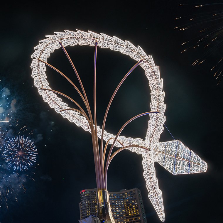 สำหรับงาน Bulgari Serpenti Light Up ฉลองเปิดไฟคริสต์มาส ดีไซน์ เซอร์เพนติ เนคเลซ ในรูปแบบอินเตอร์แอคทีฟทางแบรนด์ Bulgari สร้างสรรค์ พิธีเปิดอันตระการตา ไม่ว่าจะเป็นการแสดงดอกไม้ไฟตลอดริมโค้งน้ำเจ้าพระยา รัศมียาวกว่า 2,000 เมตร เป็นเวลากว่า 3 นาที ซึ่งเป็นการแสดงดอกไม้ไฟที่ยาวที่สุดเท่าที่เคยมี ตื่นตาตื่นใจกับการแสดงไฟเลเซอร์ การแสดงนาฏศิลป์ร่วมสมัยอันน่าจดจำ
