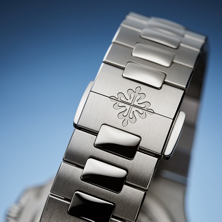 Nautilus Reference 5811/1G ลงตัวอย่างสมบูรณ์แบบกับสายแบบสร้อยข้อมือไวท์โกลด์ ขัดแต่งพื้นผิวของข้อสายส่วนกลางแบบขัดเงาสลับกับข้อสายขัดผิวด้าน โอบกระชับข้อมือด้วยที่พับล็อกแบบ “fold-over” อันเป็นลิขสิทธิ์เฉพาะของ Patek Philippe อีกทั้งยังมีระบบล็อกสายแบบปรับระดับได้ ช่วยให้สามารถขยายความยาวของสายได้มากขึ้นอีกแล็กน้อยที่ 2 – 4 มิลลิเมตรเพื่อการสวมใส่สบายยิ่งขึ้น