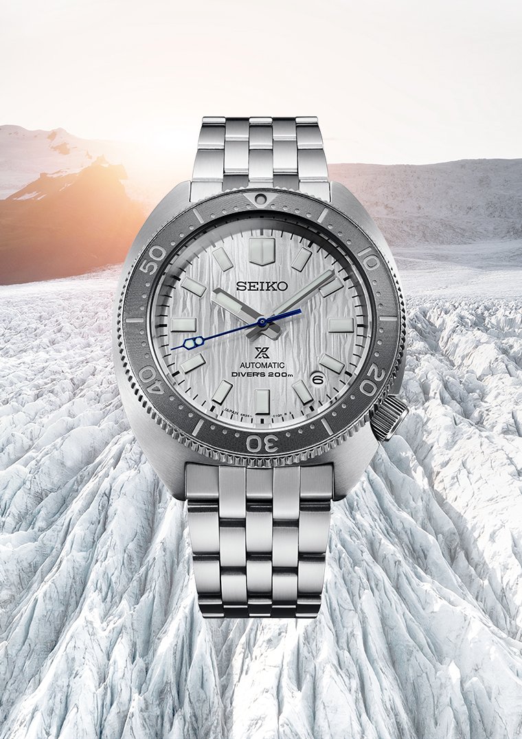 พลังแห่งการสร้างสรรค์ครั้งใหม่นี้สะท้อนผ่านพื้นผิวของหน้าปัดที่เป็นเสมือนภาพของธารน้ำแข็งขั้วโลกที่รวมตัวกันจนกลายเป็นภูมิทัศน์และทิวทัศน์ทะเลของอาร์กติกและแอนตาร์กติกอันมีเอกลักษณ์ ซึ่งเป็นสถานที่ที่สร้างชื่อเสียงให้กับนาฬิกาของ Seiko ในด้านความทนทานและการใช้งาน เมื่อนักผจญภัยและนักวิจัยทั้งหลายต่างสวมใส่นาฬิกาของ Seiko ในขณะออกเดินทางเพื่อสำรวจขั้วโลกเหนือและใต้ ในช่วงทศวรรษที่ 1960 และ 1970