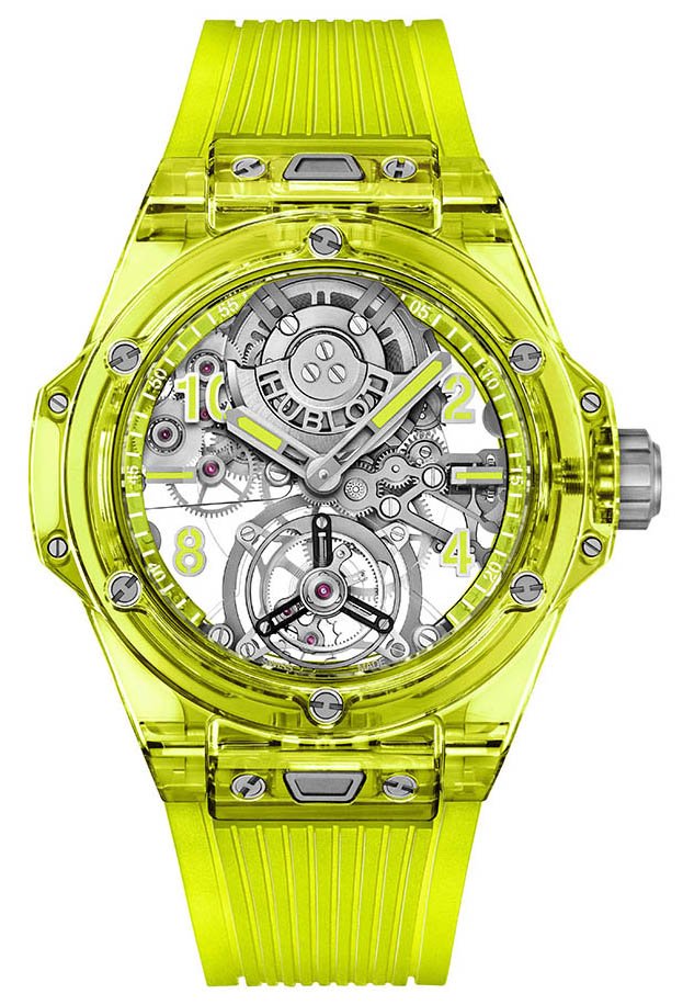 “เราใช้เวลาเกือบสามปีของการวิจัย หลังการเปิดตัวของ MP-11 Emerald Green ในการพัฒนาสีสันใหม่ที่เหมาะสำหรับนาฬิกา Big Bang ของเรา พร้อมทั้งคุณสมบัติความโปร่งใสและความทนทานอย่างสมบูรณ์แบบ นับเป็นอีกครั้งที่ Hublot ได้ผลักซึ่งพรมแดนของความเป็นไปได้ด้านนวัตกรรมเทคโนโลยีและสุนทรียะความสวยงามไปอีกขั้น โดยผสมผสานสิ่งเหล่านี้เข้าด้วยกันเพื่อรังสรรค์นาฬิกาจากโรงงานการผลิตภายใต้สีเหลืองนีออนอันเป็นเอกลักษณ์เฉพาะเพียงหนึ่งเดียว” Ricardo Guadalupe (ริคาร์โด กัวดาลูเป) / HUBLOT CEO