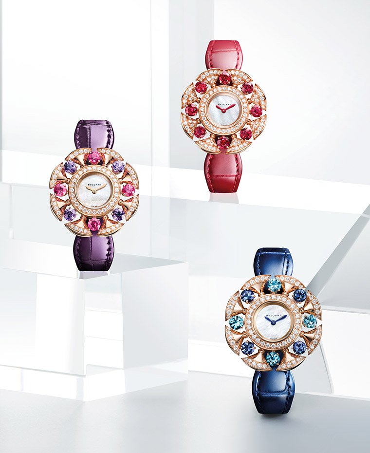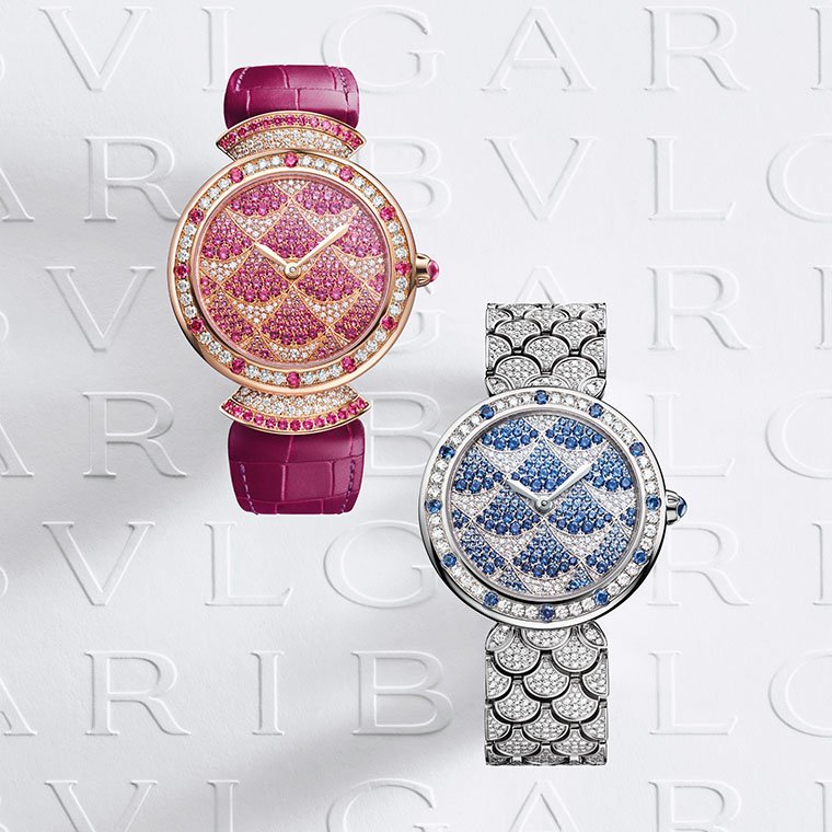 ด้วยสีสันและความสนุกสนานของ Divas’ Dream (ดีวาส์ ดรีม) ชีวิตอันแสนหวานแห่ง Dolce Vita (โดลเซ วิตา) ได้มอบให้ชั่วโมงต่างๆ นั้นเต้นระบำไปตามท่วงทำนองของช่วงขณะเวลาอันสำคัญสำหรับความเป็นนิจนิรันดร์ Bulgari ได้ร่วมเฉลิมฉลองศิลปะแห่งการใช้ชีวิตสไตล์อิตาเลียน และความสง่างามวิจิตรของยุคทองของโรม ในฐานะ “ผู้เชี่ยวชาญแห่งสีสัน” (“Master of Colours”) ที่ได้รังสรรค์ให้กลีบดอกประดับอัญมณีของ Divas’ Dream สามารถสั่นไหว และนำเสนอซึ่งการไล่เฉดอันสมบูรณ์แบบของแซฟไฟร์สีน้ำเงินและสีชมพูบนเรือนเวลา Divas’ Dream Mosaica (ดีวาส์ ดรีม โมเซกา)