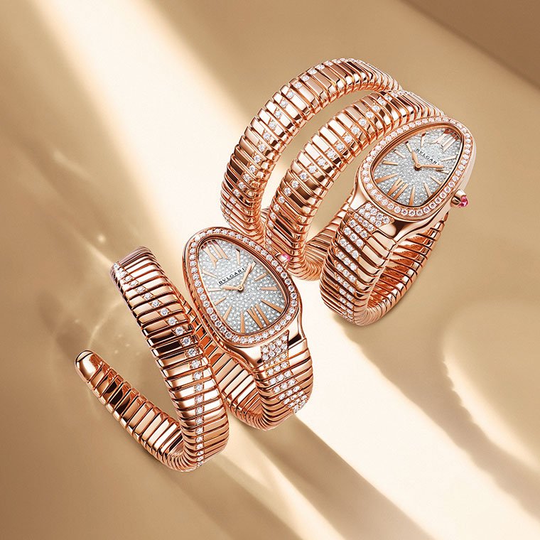 การถือกำเนิดใหม่อย่างไม่สิ้นสุด สติปัญญาและพลัง ได้แสดงออกผ่านความโค้งอันสง่างามและเย้ายวนใจของงู สัตว์แห่งตำนาน พร้อมด้วยเสน่ห์อันเย้ายวนราวกับเครื่องรางนี้คือความหลงใหลของ Bulgari เสมอ โดยผลงานสร้างสรรค์งู หรือ serpenti (เซอร์เพนติ) ในภาษาอิตาลีชิ้นแรกๆ นั้นถ่ายทอดภายใต้รูปทรงเรขาคณิตอันเปี่ยมด้วยสไตล์ในรูปแบบของนาฬิกานับตั้งแต่แรกเริ่มในปี ค.ศ. 1948 ด้วย Tubogas (ทูโบกาส) ที่โอบรับข้อมือด้วยการเคลื่อนไหวราวลูกคลื่น สายที่โอบรับข้อมือนี้นับเป็นผลลัพธ์ของเทคนิคอันซับซ้อนที่เกี่ยวข้องกับการรังสรรค์ขึ้นจากขดลวดทองหรือสตีลยาวหลายเมตร โดยในช่วงปลายทศวรรษ 50s Serpenti ได้เปลี่ยนแปลงอีกครั้งกับโฉมหน้าที่มีความเหมือนจริงมากขึ้น และใช้รูปทรงของฝาปิดสำหรับซ่อนตัวเรือนของนาฬิกาสไตล์ secret’ watches ขณะที่ลวดลายเกล็ดงูได้ประยุกต์ใช้การตกแต่งด้วยงานลงยาสีและอัญมณีล้ำค่า โดยในปี ค.ศ. 2010 Bulgari ได้หลอมรวมสองไอคอนไว้ด้วยกันในเวอร์ชันอันร่วมสมัย ด้วยตัวเรือนอันคดเคี้ยวของนาฬิกา Serpenti ซึ่งจัดวางไว้ด้านบนสุดของสายสร้อยข้อมือทูโบกาส ตามมาด้วยในปี ค.ศ. 2022 บุลการีได้เปิดตัวครั้งแรกของกลไกจักรกลทรงกลมที่มีขนาดเล็กที่สุด อย่าง Piccolissimo caliber BVL 100 (พิคโคลิสซิโม คาลิเบอร์ บีวีแอล 100) ซึ่งติดตั้งไว้ภายในเรือนเวลา Serpenti High Jewellery (เซอร์เพนติ ไฮ จิวเวลรี) และสำหรับปี ค.ศ. 2023 นี้ Serpenti ได้สร้างการเปลี่ยนรูปให้กับงูขึ้นอีกครั้ง ที่สะท้อนถึงความเป็นไปได้อันประณีตวิจิตรและหลากหลาย นั่นคือ ผลงานรุ่น Serpenti Tubogas Infinity (เซอร์เพนติ ทูโบกาส อินฟินิตี้) ที่ตอกย้ำถึงสไตล์อิตาเลียนและความเชี่ยวชาญอันเข้มข้นของ Bulgari
