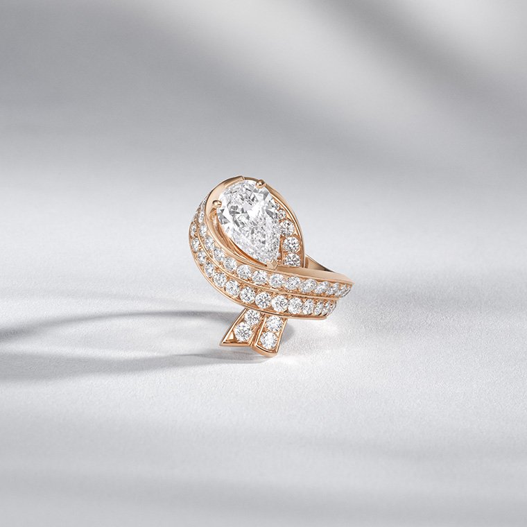 ส่วนแหวน “รอยทางสายเพชร” หรือ Chemin de diamants (เชอแม็ง เดอ เดียมองตส์) นั้น ได้รับแรงบันดาลใจจากผลงานต้นแบบอันทรงเอกลักษณ์ของเมซงระหว่างทศวรรษ 1940 นั่นก็คือโมทิฟเกล็ดหิมะ (Snowflake motif) ซึ่งรองรับการฝังเพชรลูกทรงกลมต่างขนาดเส้นผ่านศูนย์กลางเพื่อมอบมิติความลึก และเร่งความเข้มแสง ทอประกายสว่างอย่างเหนือชั้น