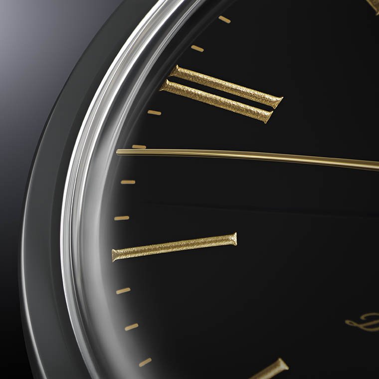 เข็มวินาทีและเข็มนาทีถูกบรรจงดัดด้วยมือให้โค้งไปตามความโค้งของหน้าปัด เพื่อให้อ่านค่าได้ชัดเจนยิ่งขึ้น