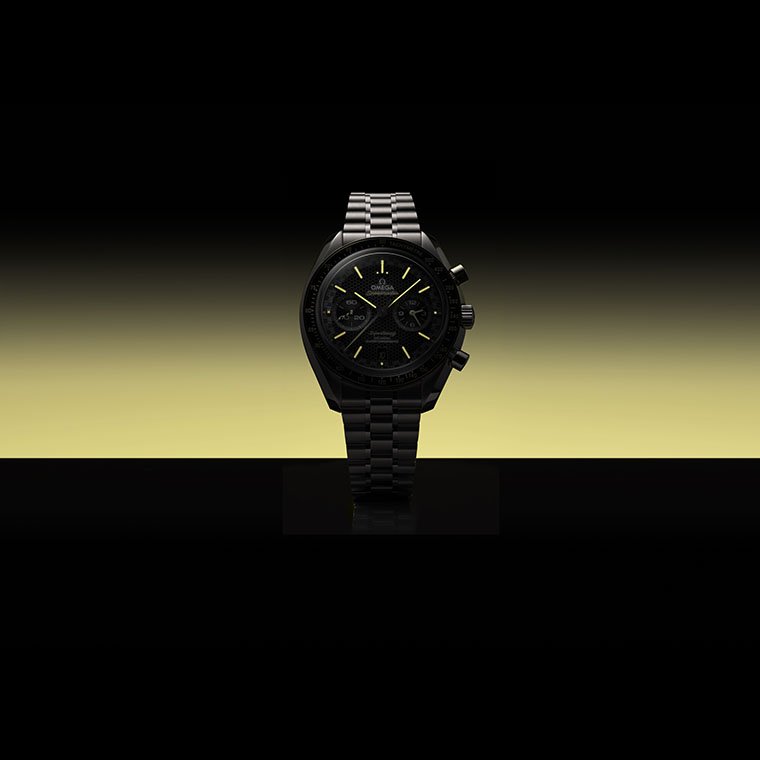 หลักชั่วโมงทรงหัวลูกศรสีดำลบมุมที่ขัดเงาแบบไดมอนด์ถูกบรรจุด้วยสารเรืองแสง Super-LumiNova แบบใหม่ซึ่งจะมอบแสงสีเหลืองพิเศษชวนประหลาดใจ รหัสสียังครอบคลุมไปจนถึงข้อความ Speedmaster และ Super Racing บนหน้าปัด ที่ตำแหน่ง 6 นาฬิกาถูกประดับอย่างงดงามด้วยรายละเอียดที่ชวนให้รำลึกถึงวาระครบรอบ 10 ปีของ >15’000 GAUSS: เลข “10” ในฟ้อนต์อักษรแบบเดียวกับ Speedmaster ซึ่งจะปรากฏหนึ่งครั้งต่อเดือนบนหน้าต่างวันที่ของนาฬิกา