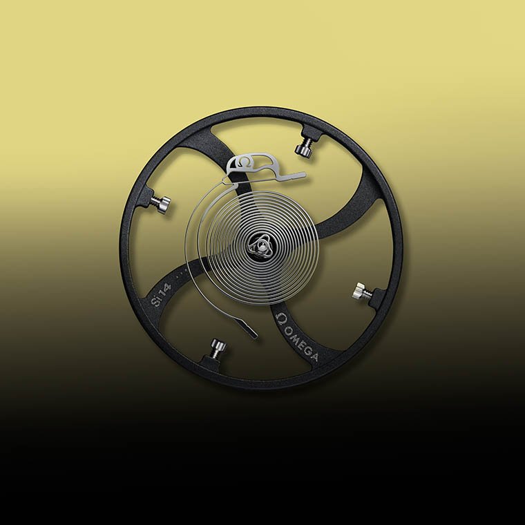 ชิ้นส่วนสำคัญของระบบปล่อยจักรแบบ Co-Axial คือบาลานซ์สปริง Si14 ของ OMEGA ซึ่งแม้จะมีขนาดที่เล็กละเอียดมากกว่าเส้นผมมนุษย์ถึงสามเท่า บาลานซ์สปริงซิลิคอนก็มีความยืดหยุ่น, ทนทานต่อการกระแทก และไม่ได้รับผลกระทบจากสนามแม่เหล็กอย่างสิ้นเชิง